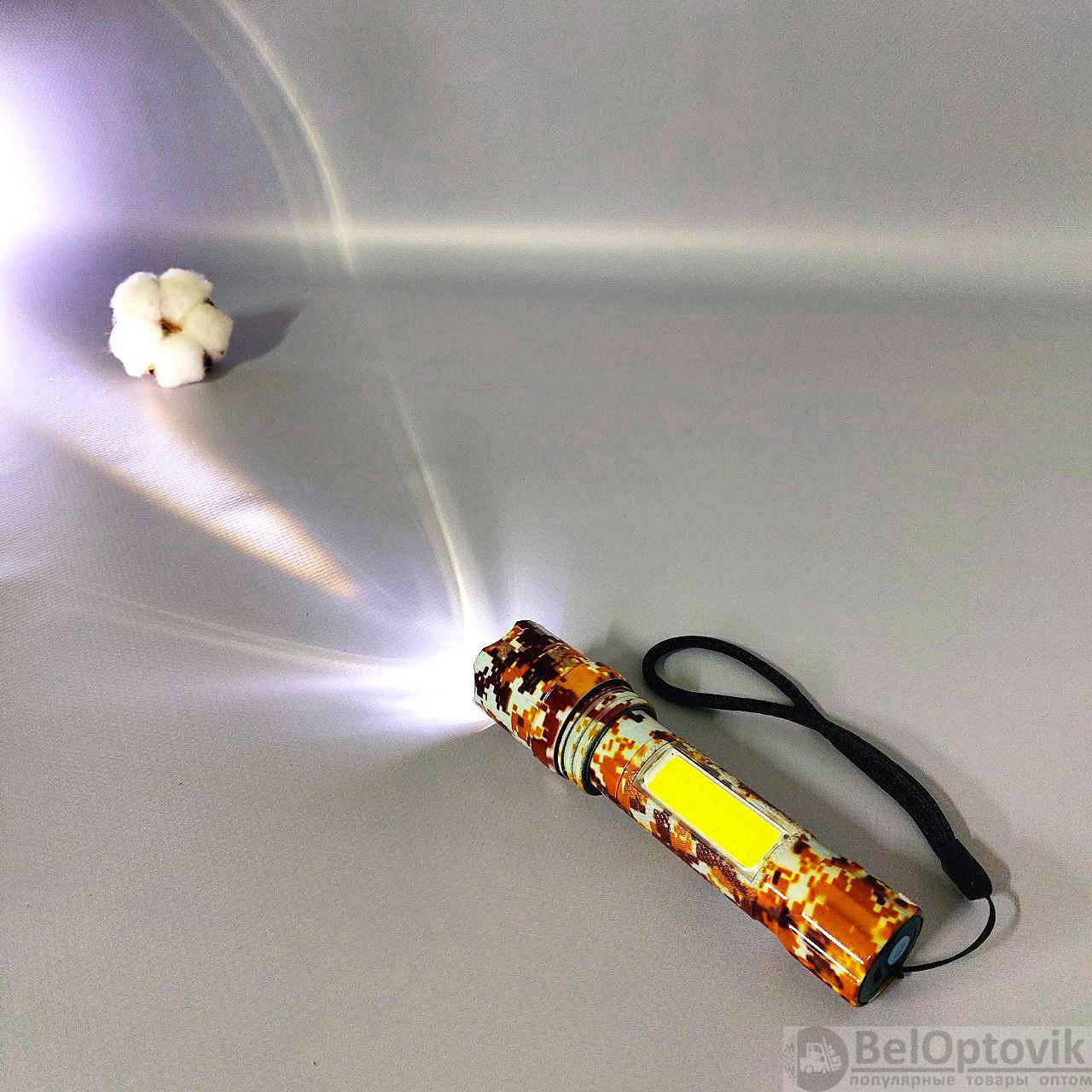 Фонарь электрический светодиодный аккумуляторный с фокусировкой луча и боковой подсветкой XPE+COB (microusb+водонепроницаемый пластиковый бокс) – 1 шт.;