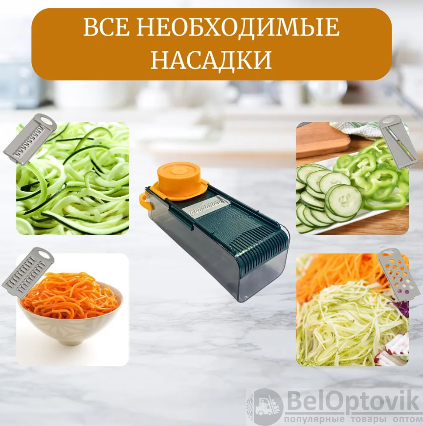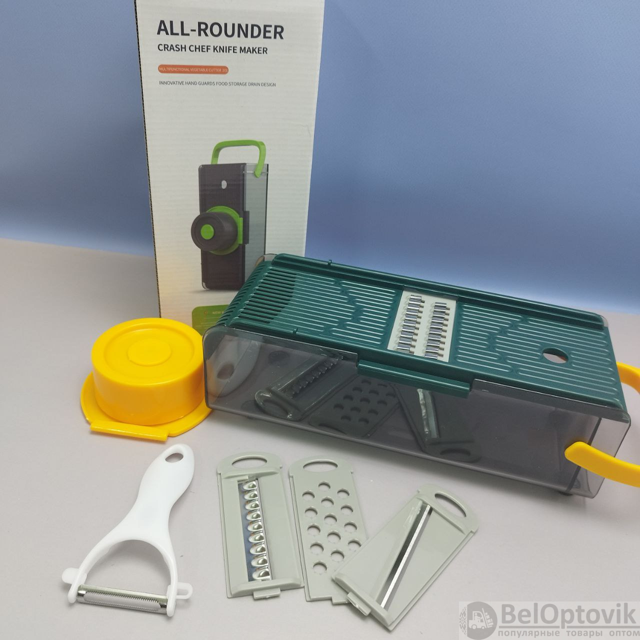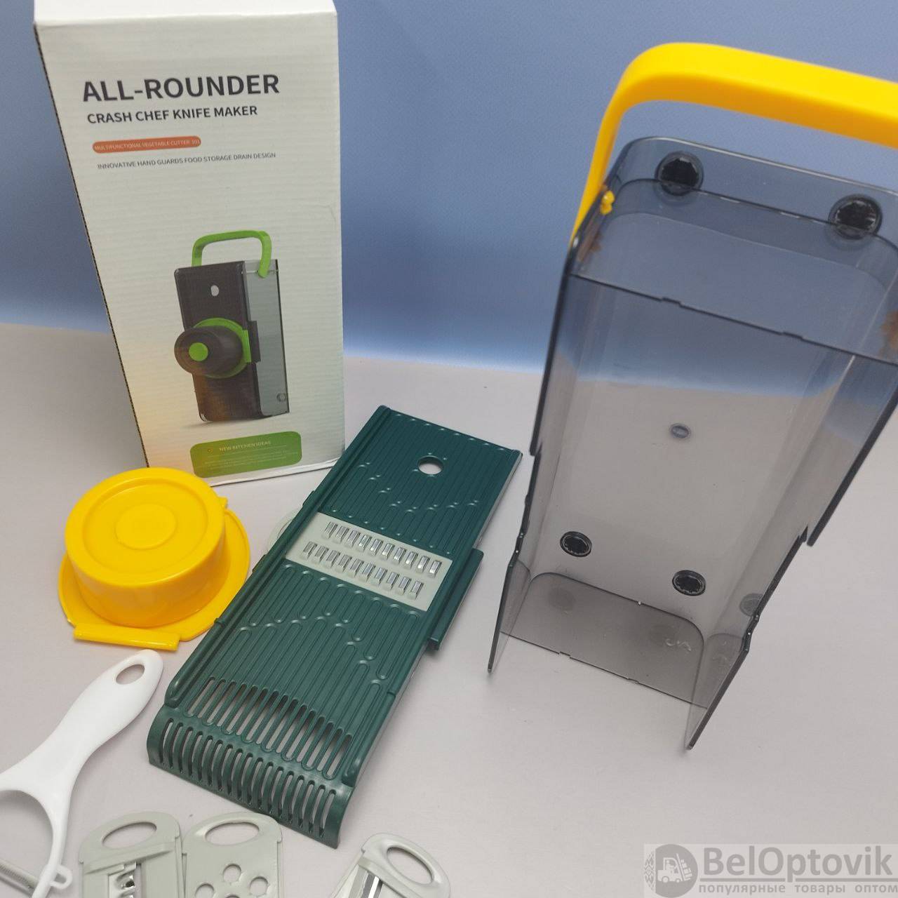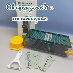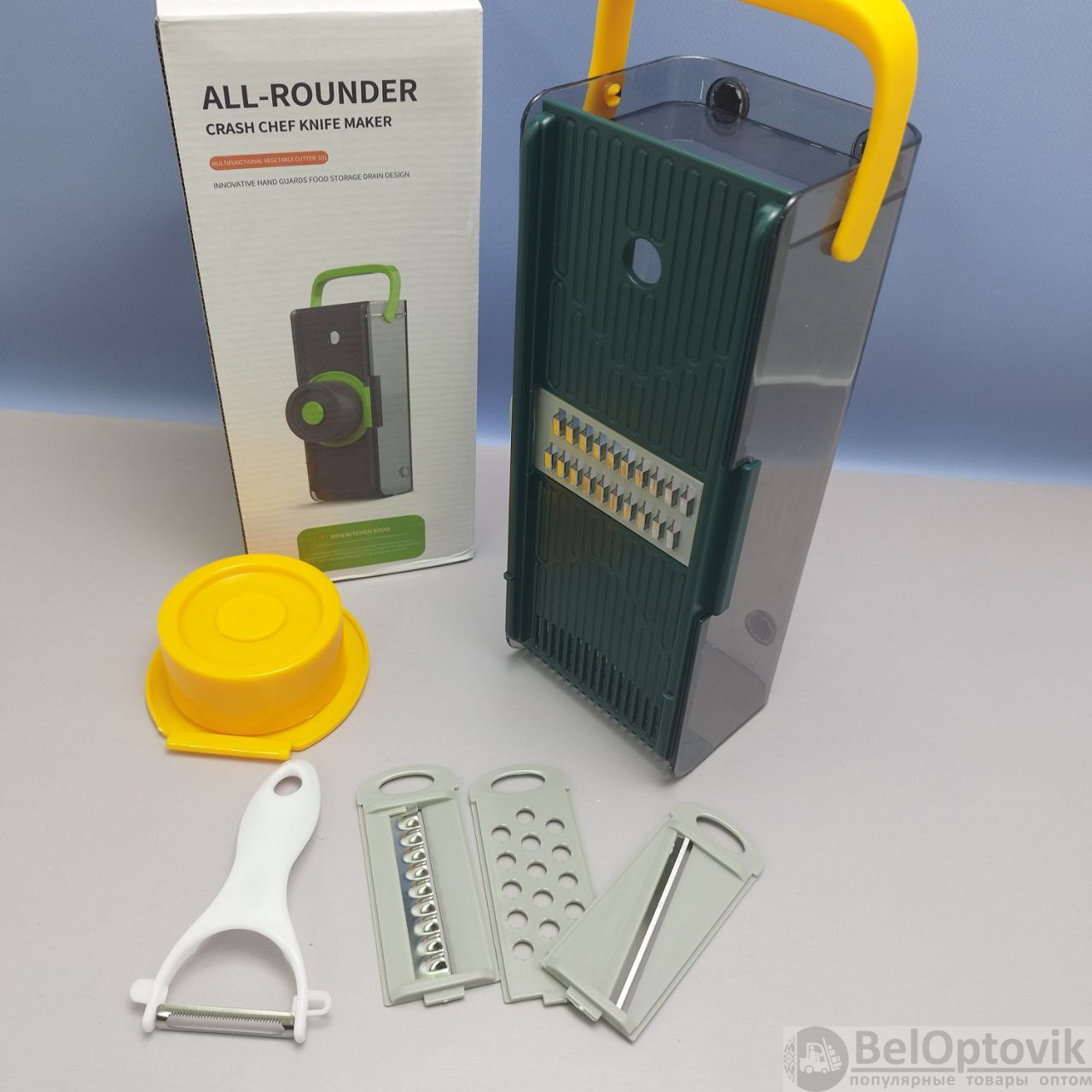 Купить Овощерезка (слайсер) ручная многофункциональная c насадками и контейнером 6в1 All-Rounder на нашем сайте можно ОПТОМ от 20 шт. или меньше, если Вы покупаете у нас и другие товары (сборный заказ).