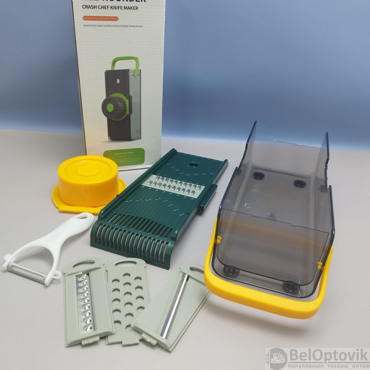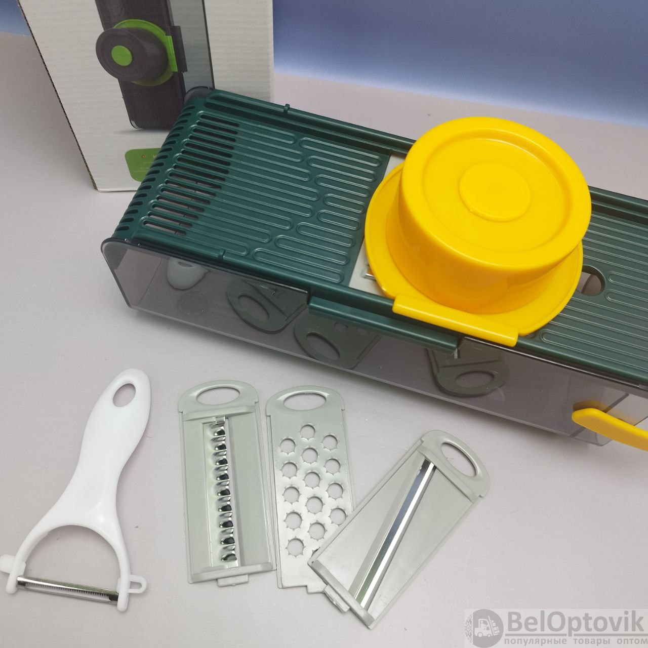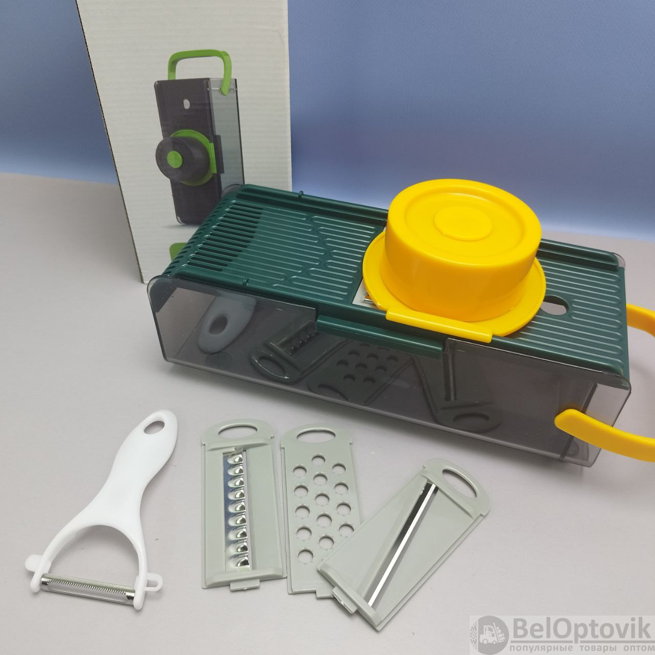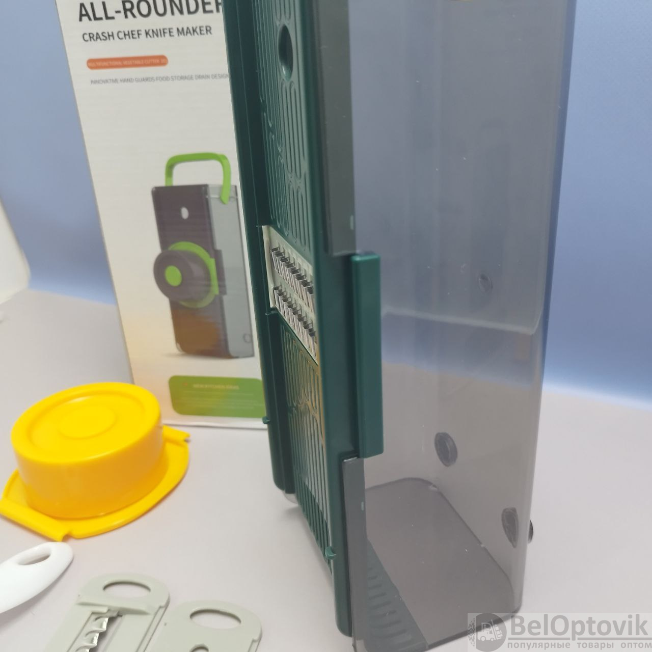 Почему купить Овощерезка (слайсер) ручная многофункциональная c насадками и контейнером 6в1 All-Rounder оптом выгодно у нас: