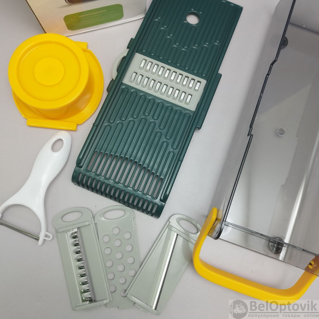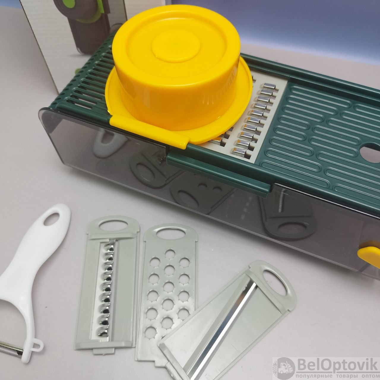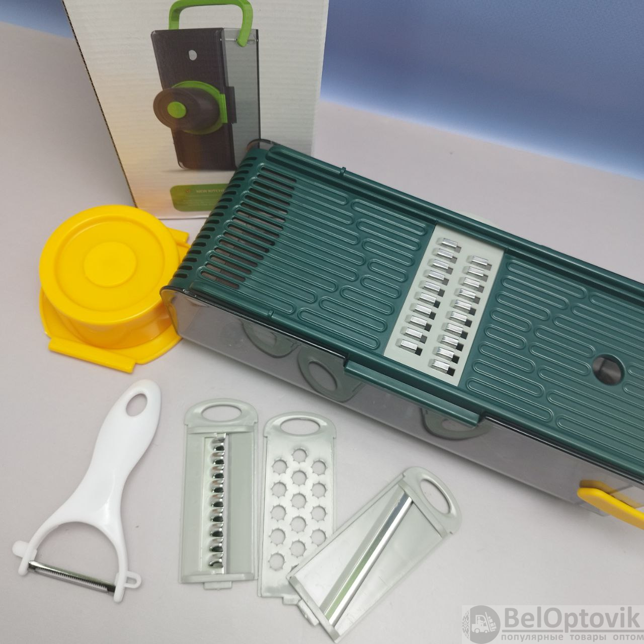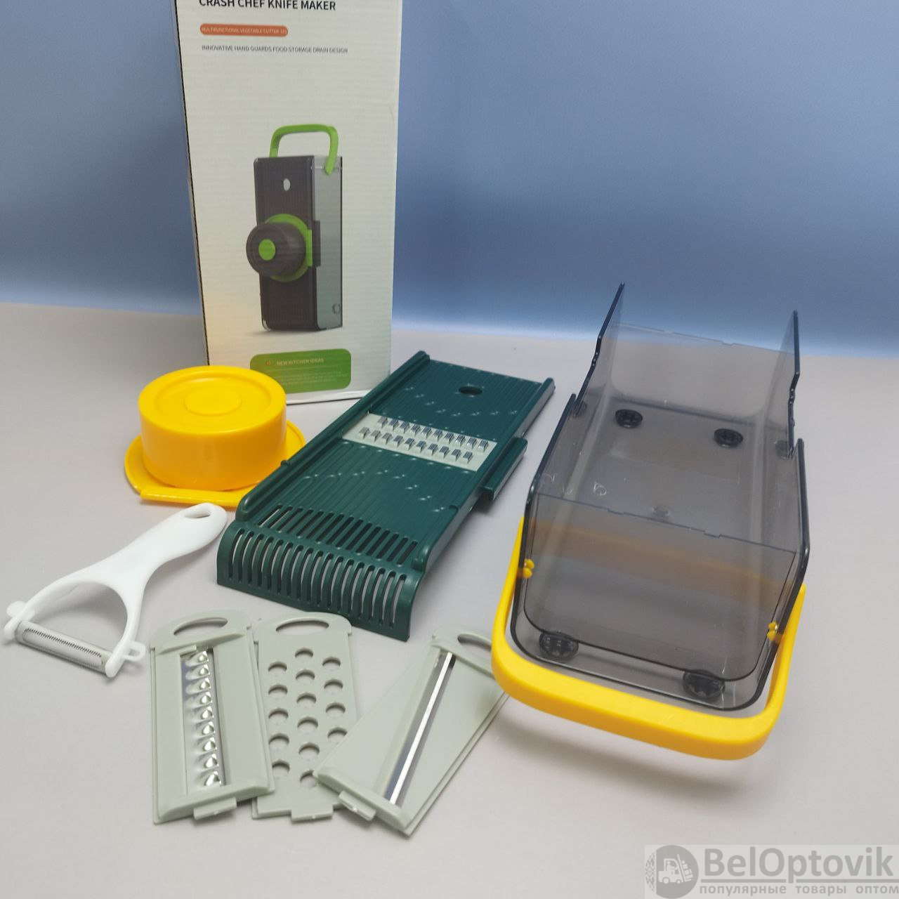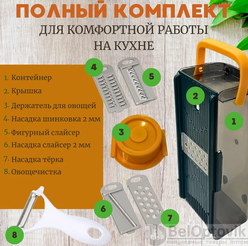 Почему купить Овощерезка (слайсер) ручная многофункциональная c насадками и контейнером 6в1 All-Rounder оптом выгодно у нас:
