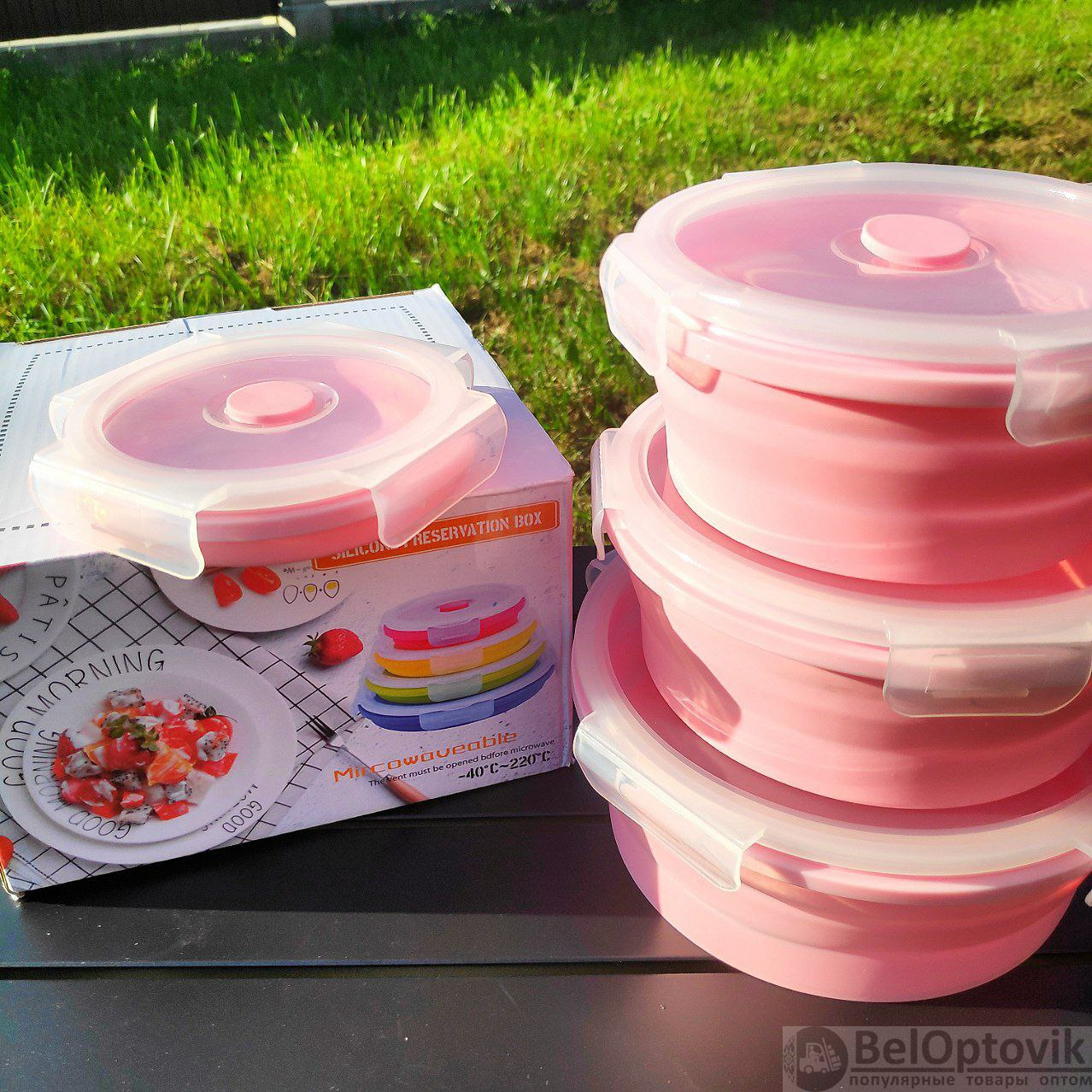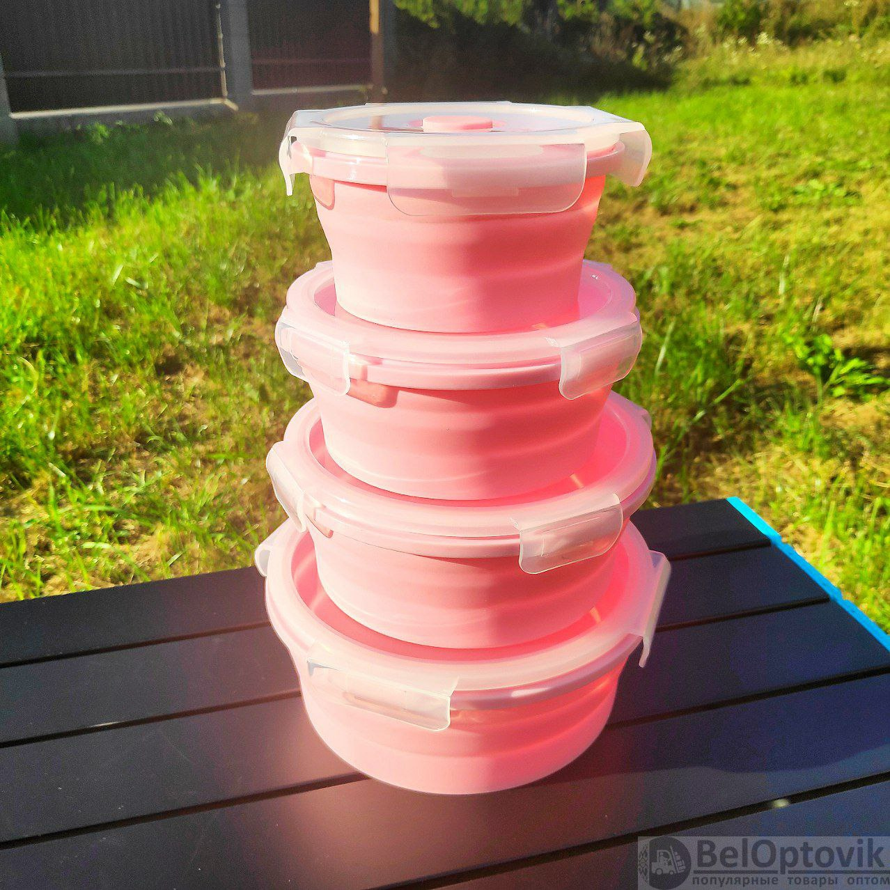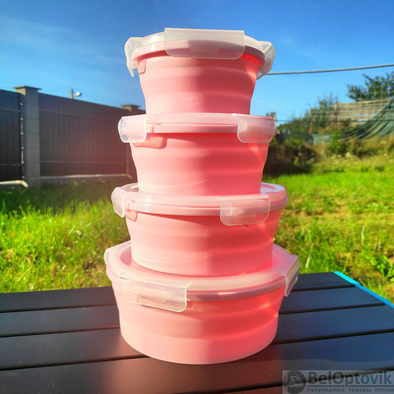 Набор круглых силиконовых контейнеров 4 шт. / Набор складных ланч-боксов (350мл, 500мл, 800мл,1200мл), Розовый цвет