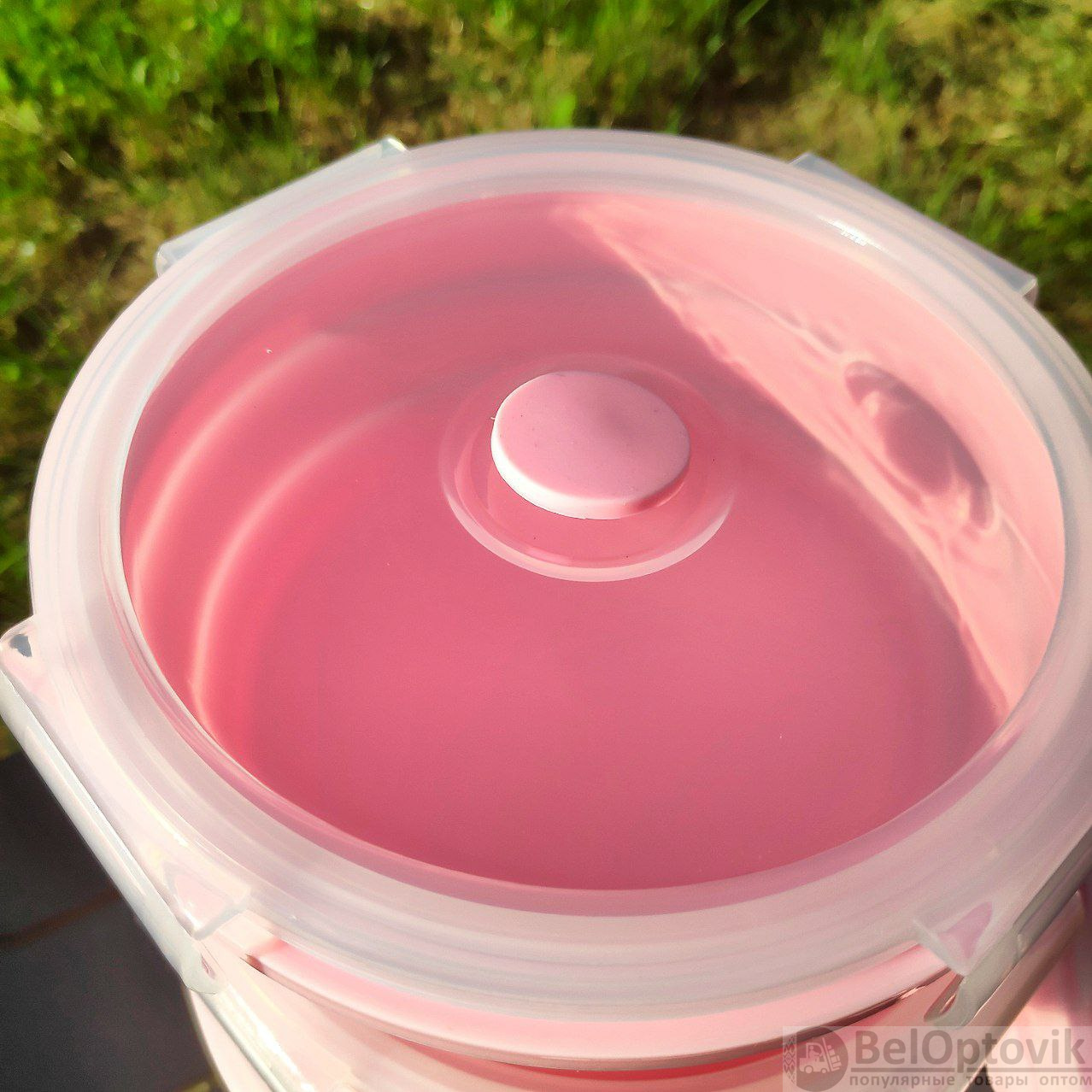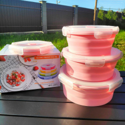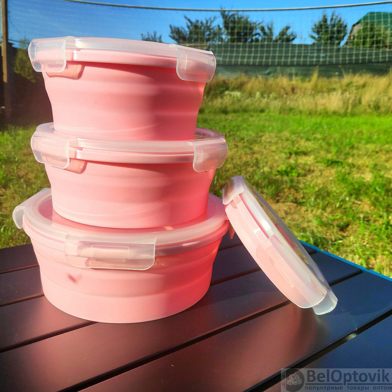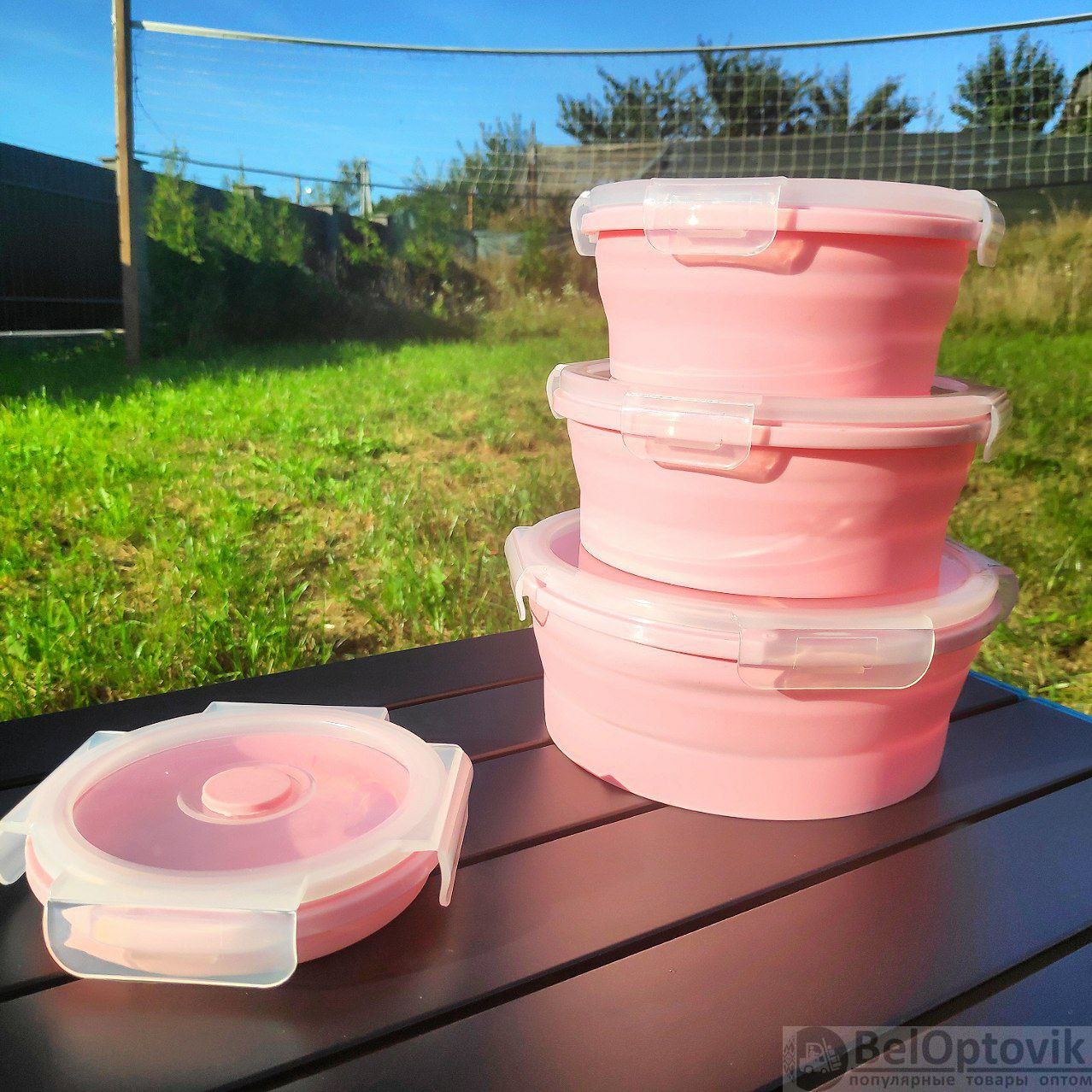 Набор круглых силиконовых контейнеров 4 шт. / Набор складных ланч-боксов (350мл, 500мл, 800мл,1200мл), Розовый цвет