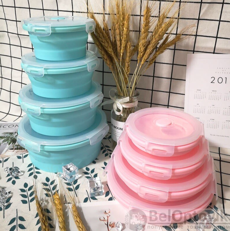 Купить Набор круглых силиконовых контейнеров 4 шт. / Набор складных ланч-боксов (350мл, 500мл, 800мл,1200мл)