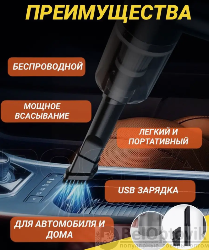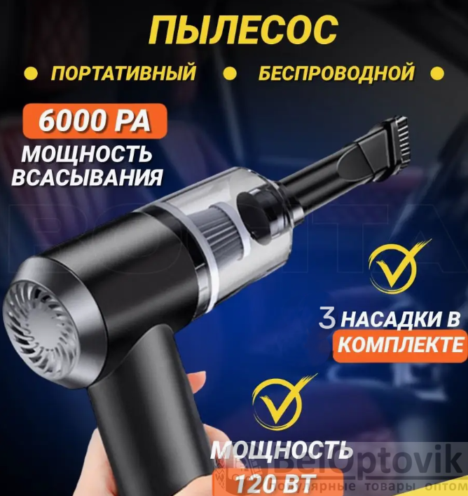 Почему купить Портативный вакуумный пылесос с тремя насадками Vacuum Cleanmer / Беспроводной универсальный пылесос оптом выгодно у нас: