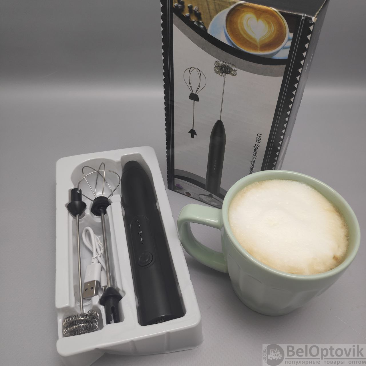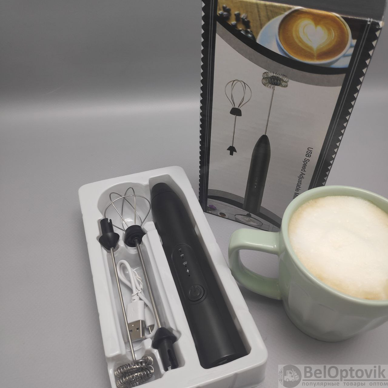 Капучинатор электрический USB Speed Adjustable Milk Frother *3 режима скорости, 2 насадки) продажа и отгрузка коробками кор/120 шт