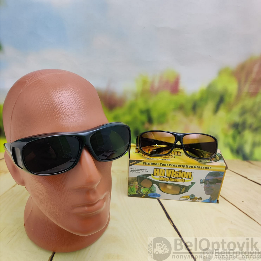 Что такое Очки HD Vision Wrap Arounds 2 в 1 (защита от УФ лучей и яркого света, антибликовые)