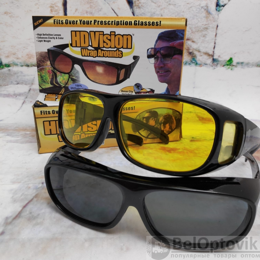 Антибликовые очки, солнцезащитные очки для водителей HD Vision Wrap Arounds 2 пары ( защита от яркого света и ультрафиолета + видимость в малоосвещенных местах) продажа и отгрузка кратно коробке/30 шт