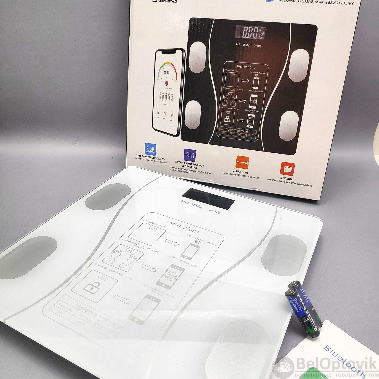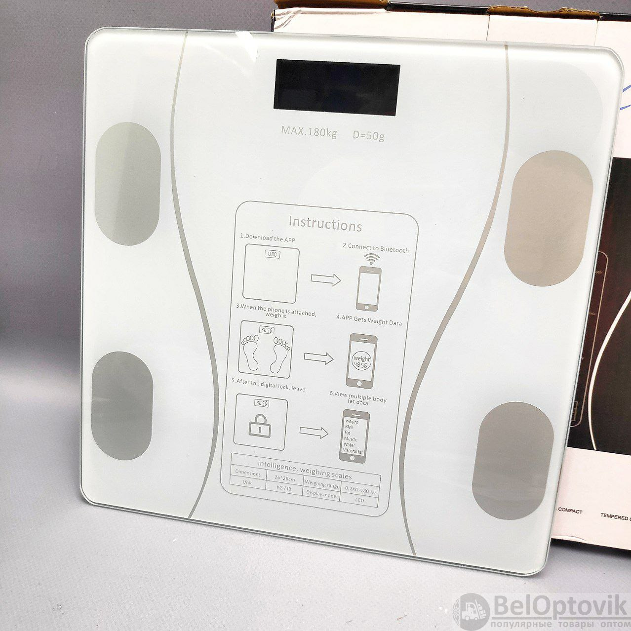 Умные напольные весы Bluetooth Smart Scale (12 показателей тела) / Весы с приложением до 180 кг., белые