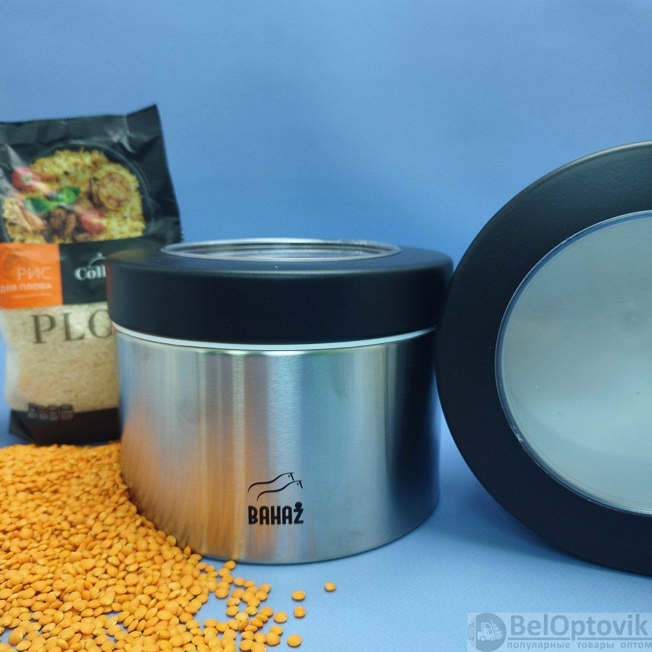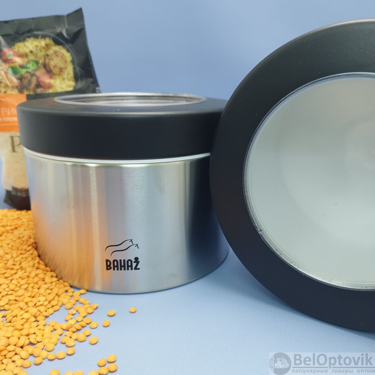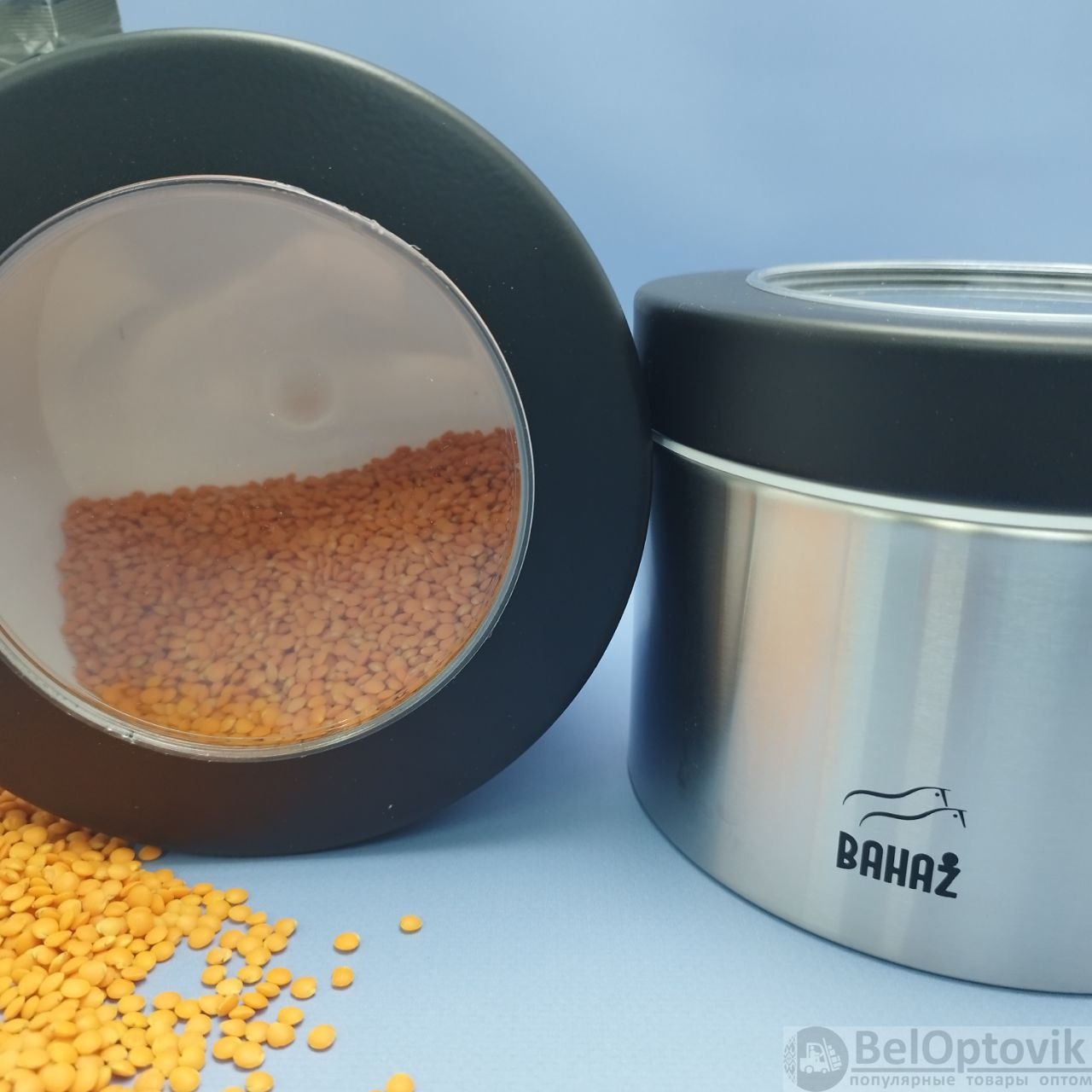 Контейнер для сыпучих продуктов металлический Bahaz 1.9 л. Металлик / Банка с прозрачной крышкой – 1 шт.;