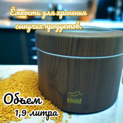 Что такое Контейнер для сыпучих продуктов металлический Bahaz 1.9 л. Ореховый/ Банка с прозрачной крышкой