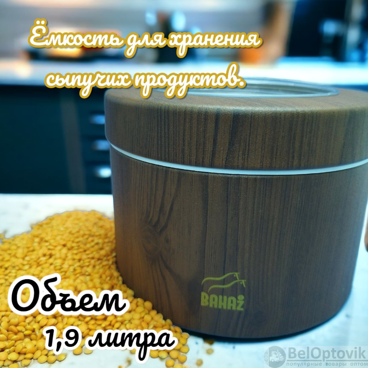 Купить Контейнер для сыпучих продуктов металлический Bahaz 1.9 л. Ореховый/ Банка с прозрачной крышкой на нашем сайте можно ОПТОМ от 20 шт. или не менее 5, если Вы покупаете у нас и другие товары (сборный заказ).