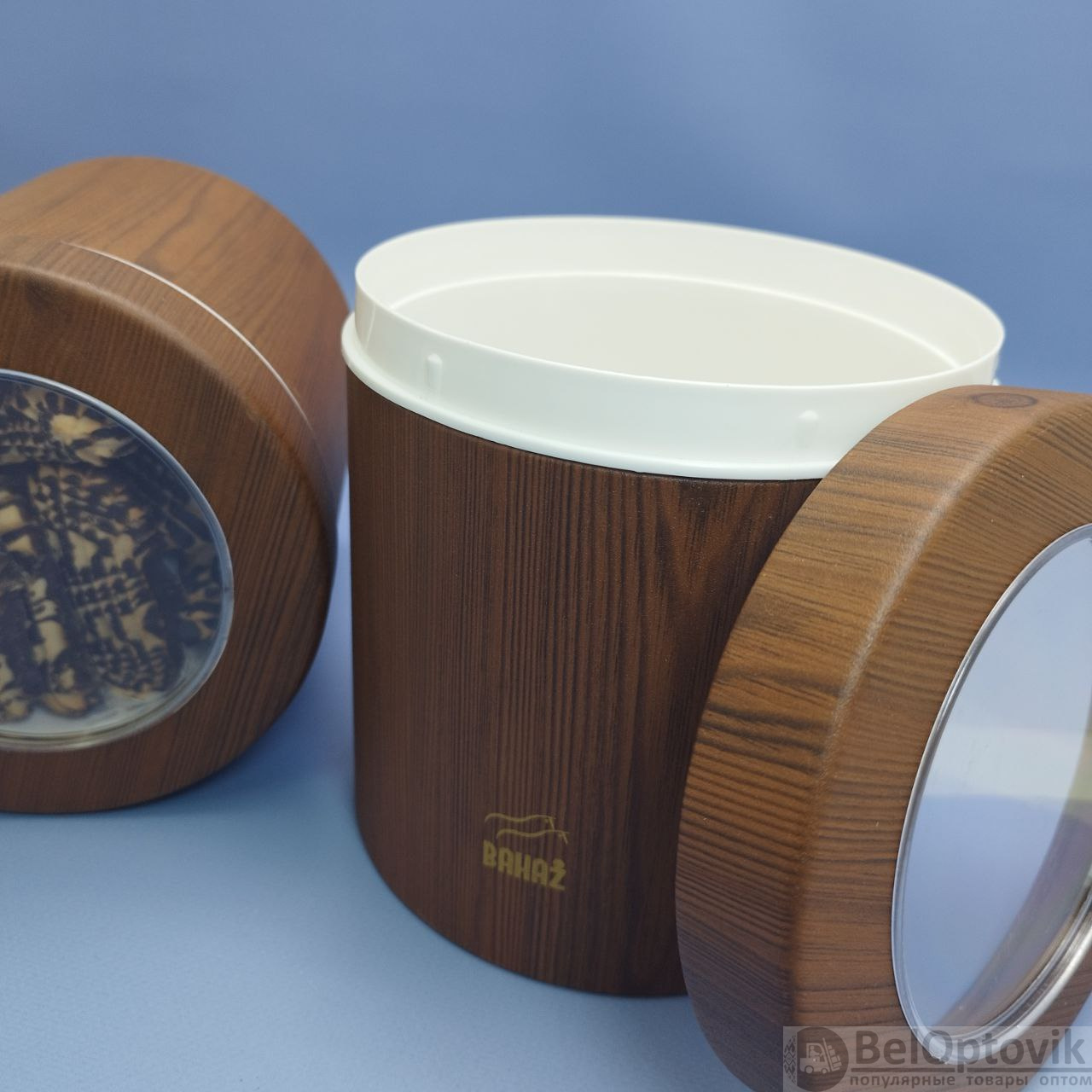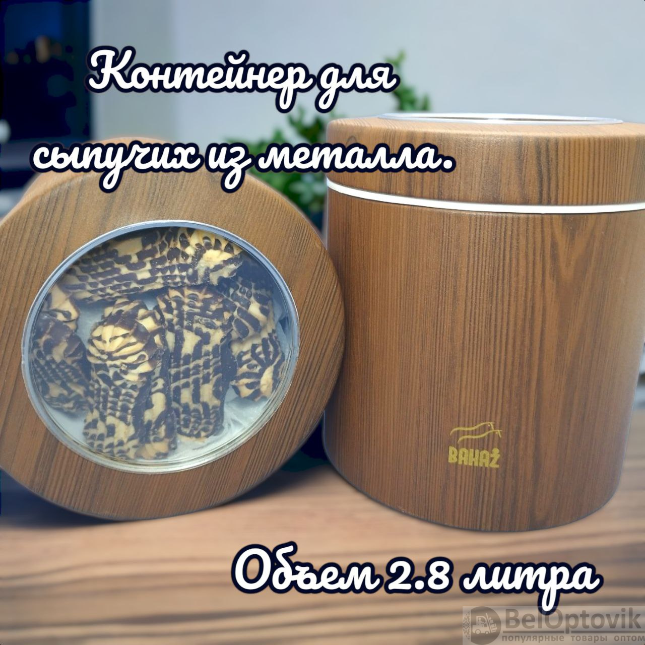 Купить Контейнер для сыпучих продуктов металлический Bahaz 2.8 л., Ореховый / Банка с прозрачной крышкой на нашем сайте можно ОПТОМ от 20 шт. или не менее 5, если Вы покупаете у нас и другие товары (сборный заказ).