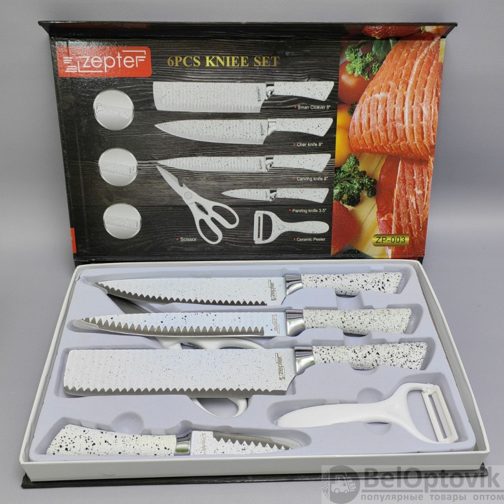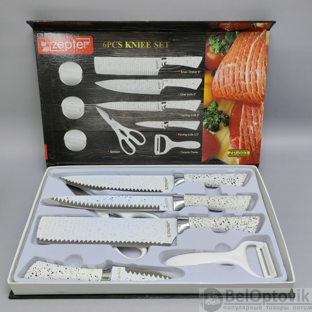 Купить Набор кухонных ножей из нержавеющей стали 6 предметов ZEPTEP ZP-003/ Подарочная упаковка на нашем сайте можно ОПТОМ от 20 шт. или меньше, если Вы покупаете у нас и другие товары(сборный заказ).
