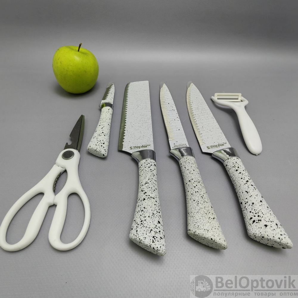 Набор кухонных ножей из нержавеющей стали 6 предметов ZEPTEP ZP-003/ Подарочная упаковка - 1 шт.;