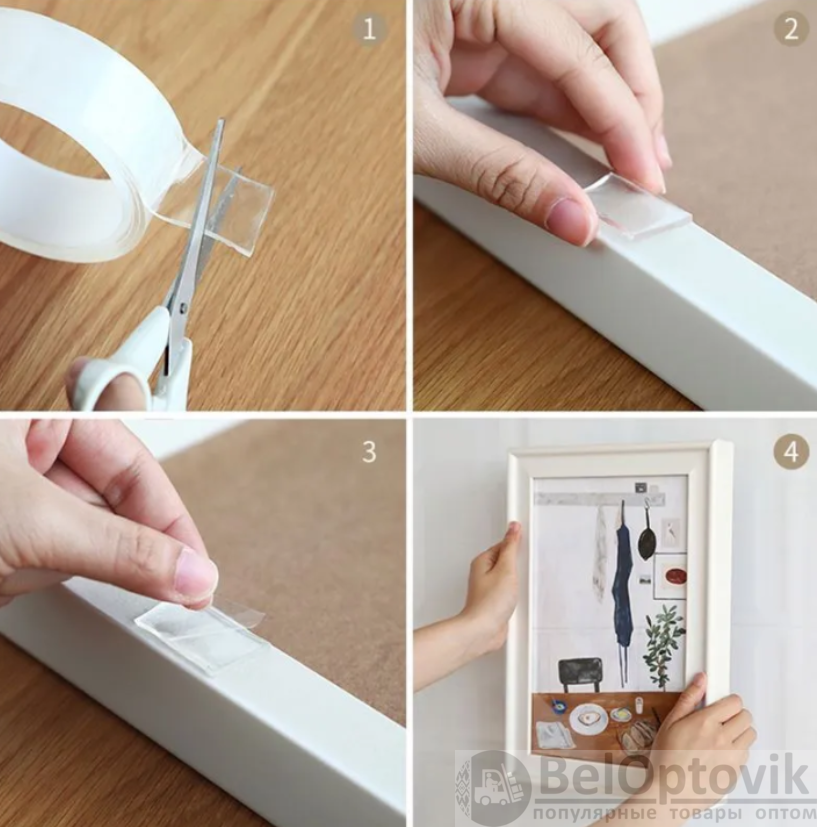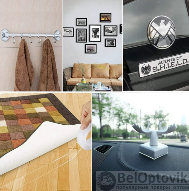Данную ленту вполне можно использовать вместо небольшой полочки для вещей дома, в гараже или на даче. Лента выдержит большинство небольших предметов, в том числе мобильные телефоны, салфетницы, картины, календарики, ручки, карандаши и многие другие предметы. Также хорошо хранить такую ленту в машине на всякий случай.