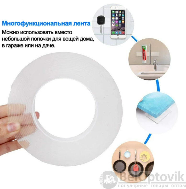 Многоразовая крепежная лента гелиевая на любые поверхности(скотч двухсторонний) UKC Ivy Grip Tape 5 м прозрачная