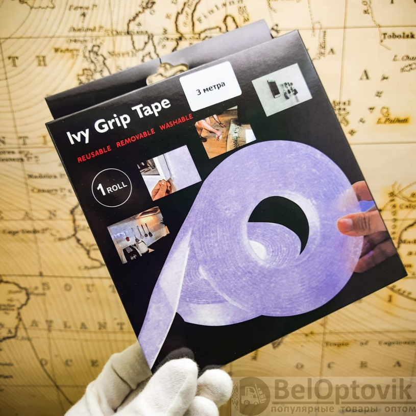 Многоразовая лента изготовлена из специального нового гелиевого материала. Ivy Grip Tape надежно крепится на абсолютно любые поверхности и снимается с них не оставляя следов. Вы можете крепить к ней любые предметы не переживая, что на них останутся следы клея. После использования промойте ее водой и она снова обретет клейкие качества.