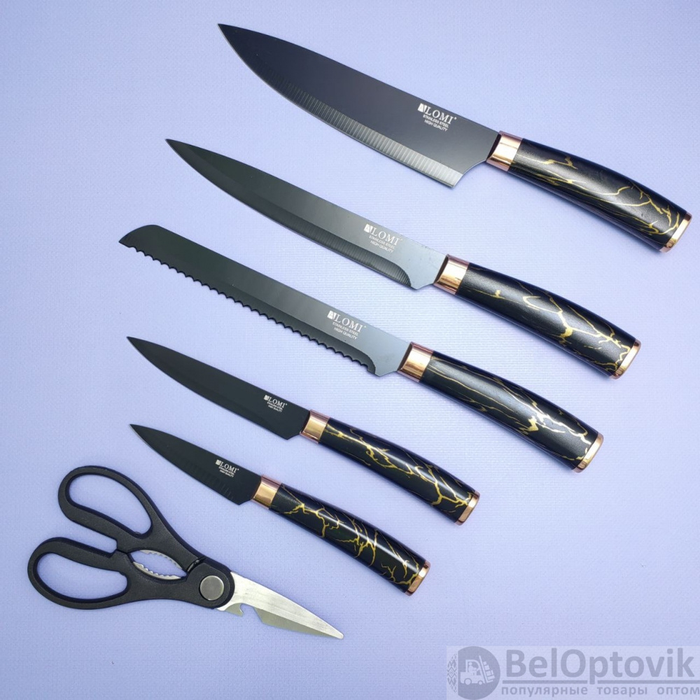Набор кухонных ножей из нержавеющей стали 7 предметов Alomi на подставке / Подарочная упаковка- 1 шт.;