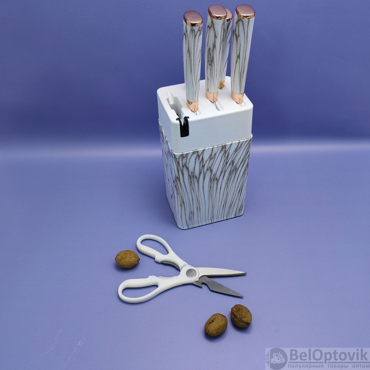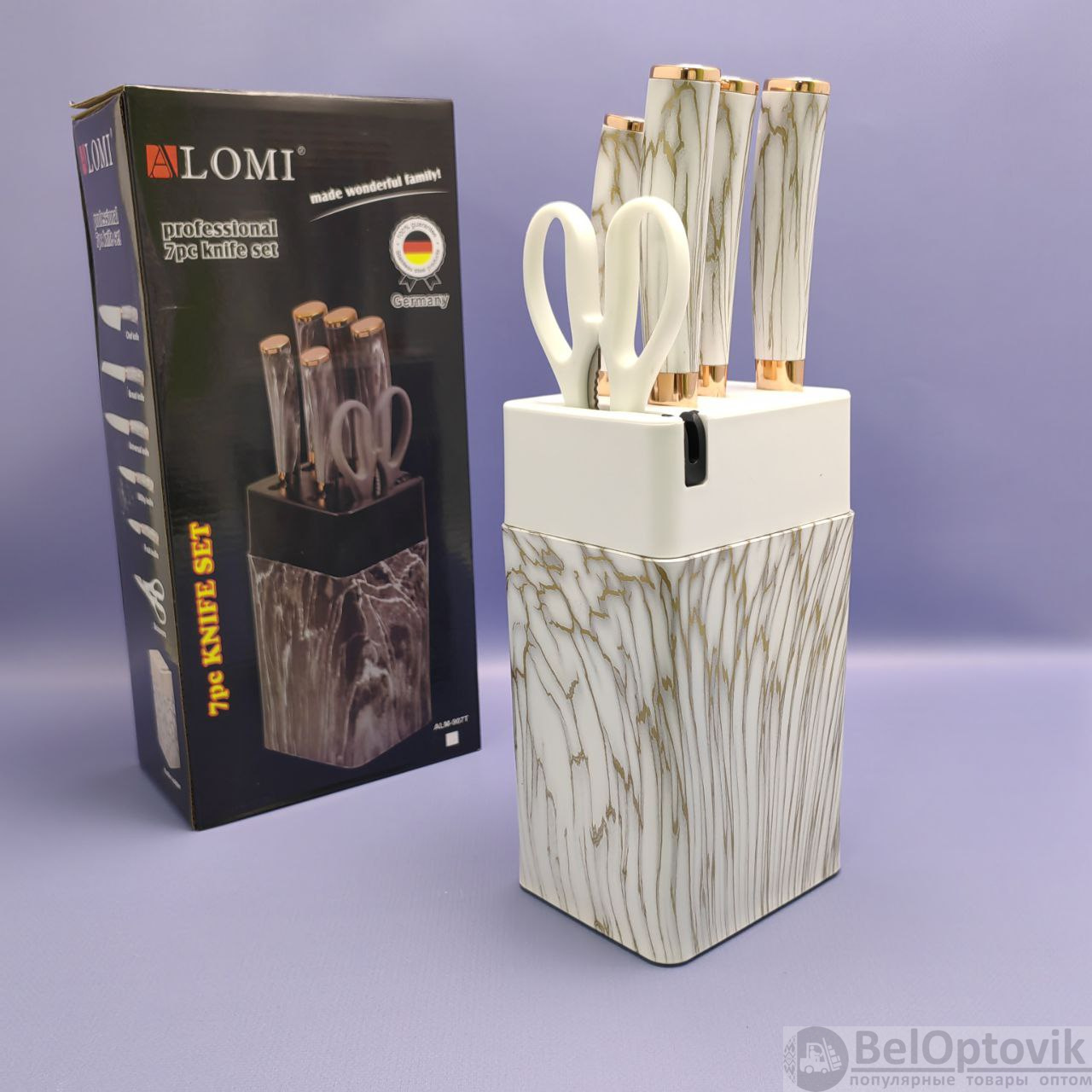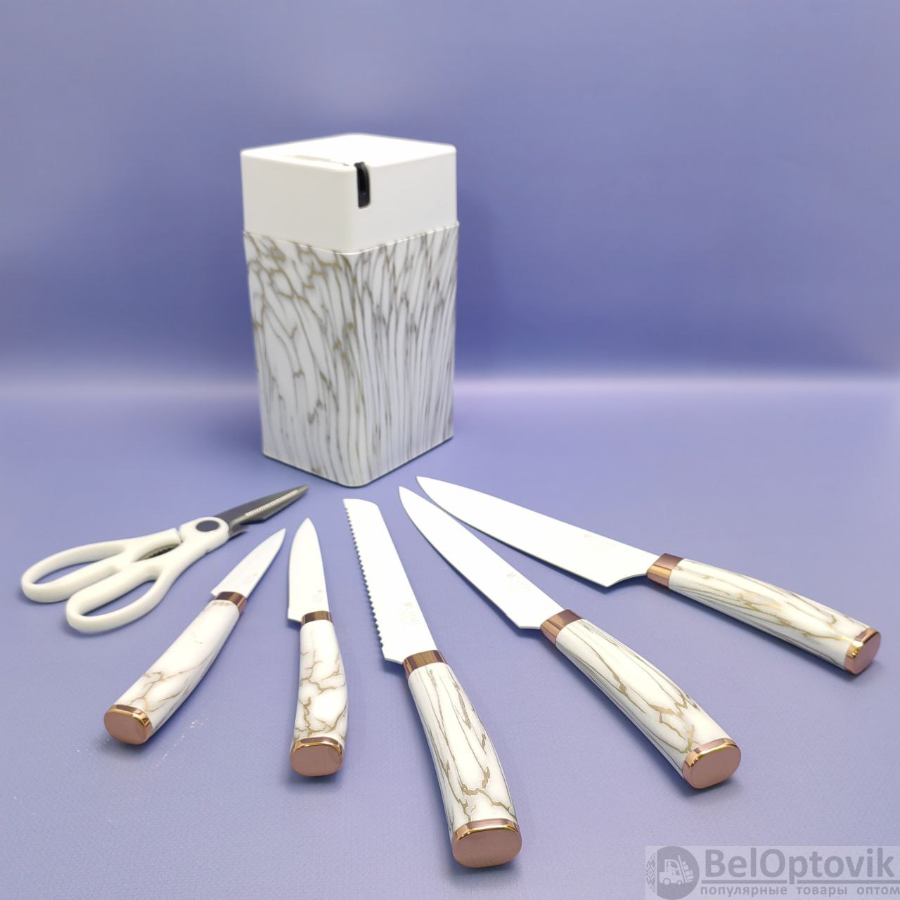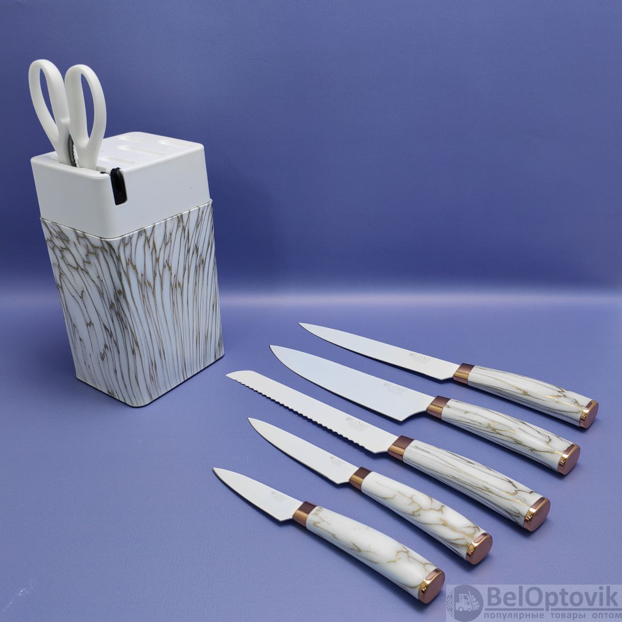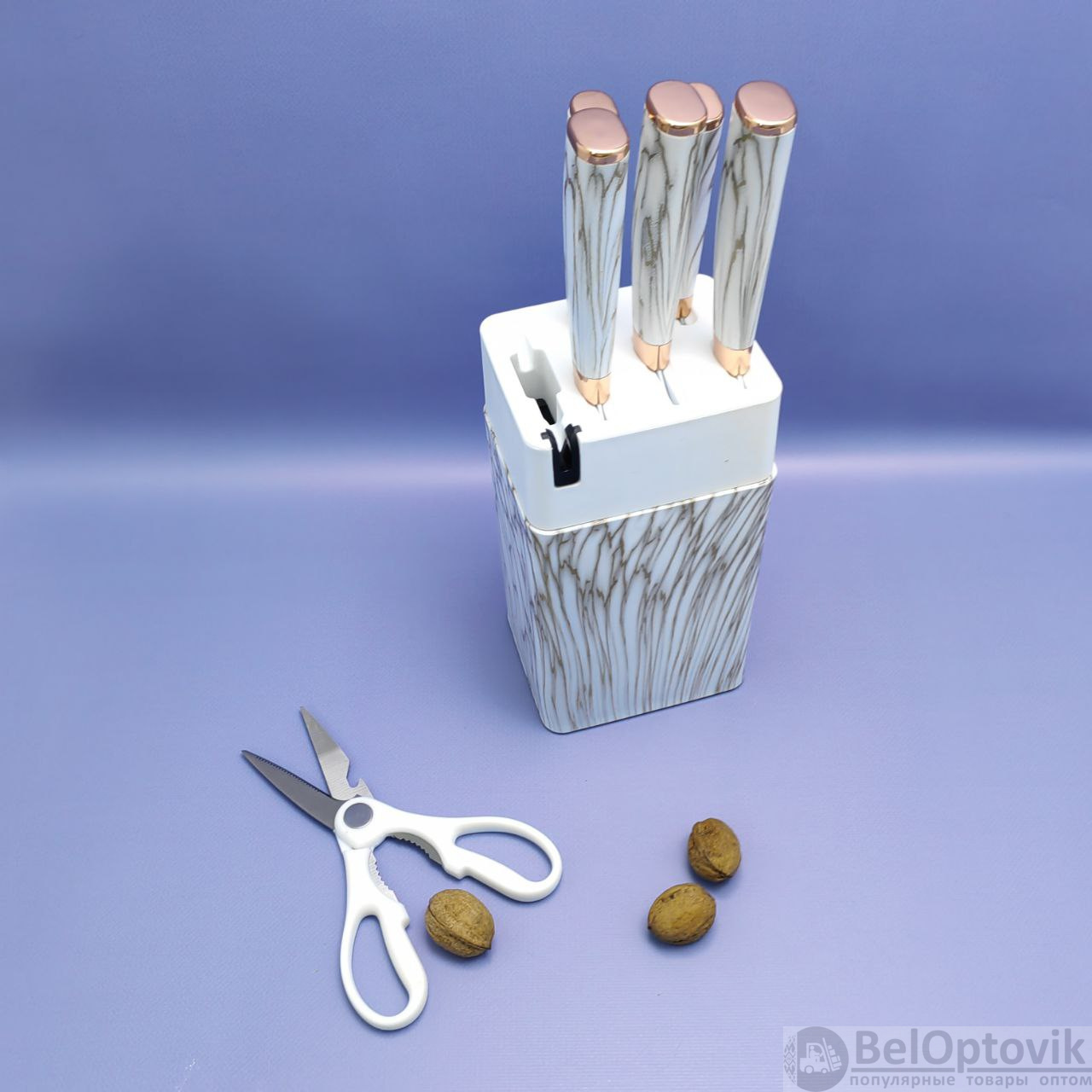 Набор кухонных ножей из нержавеющей стали 7 предметов Alomi на подставке / Подарочная упаковка, Белый мрамор