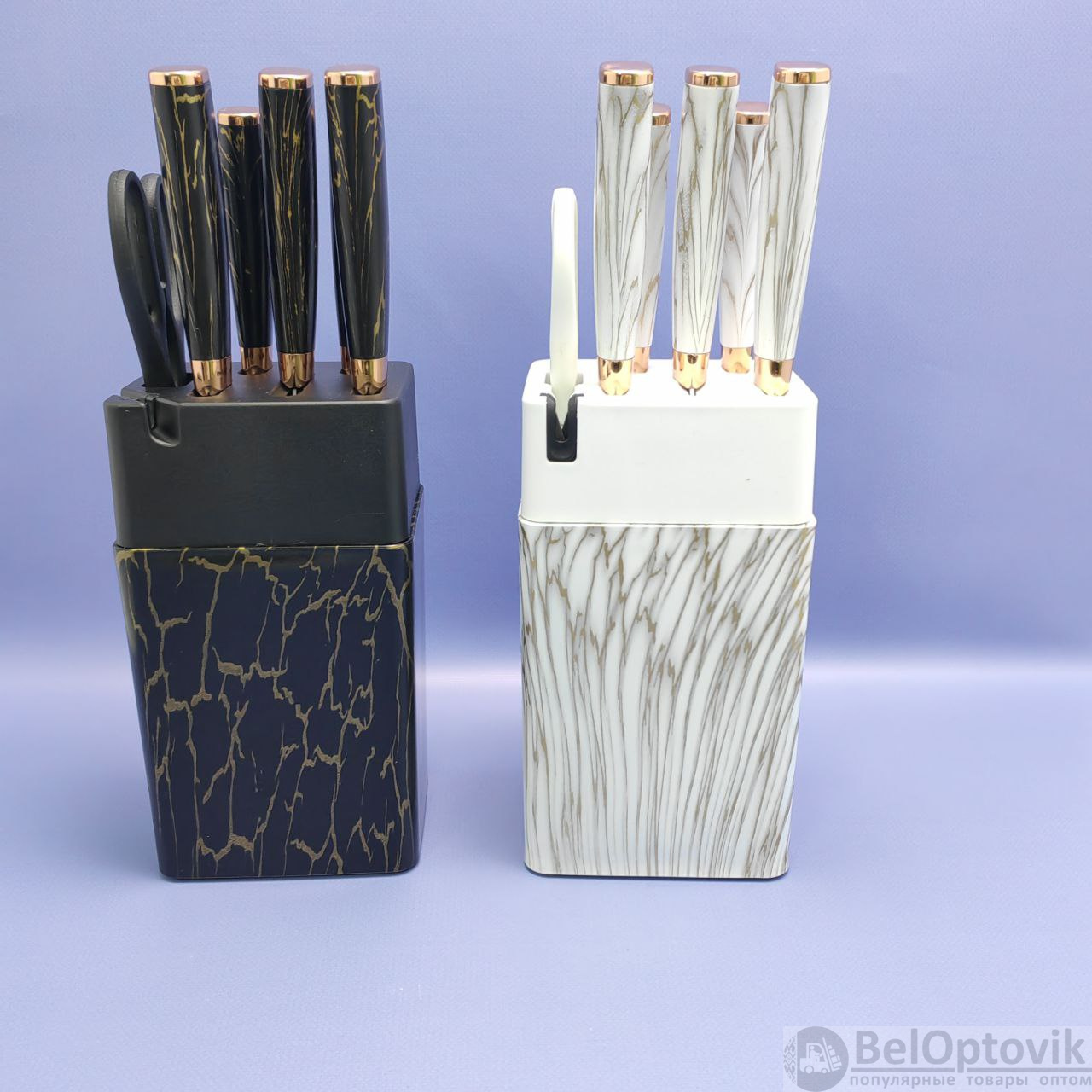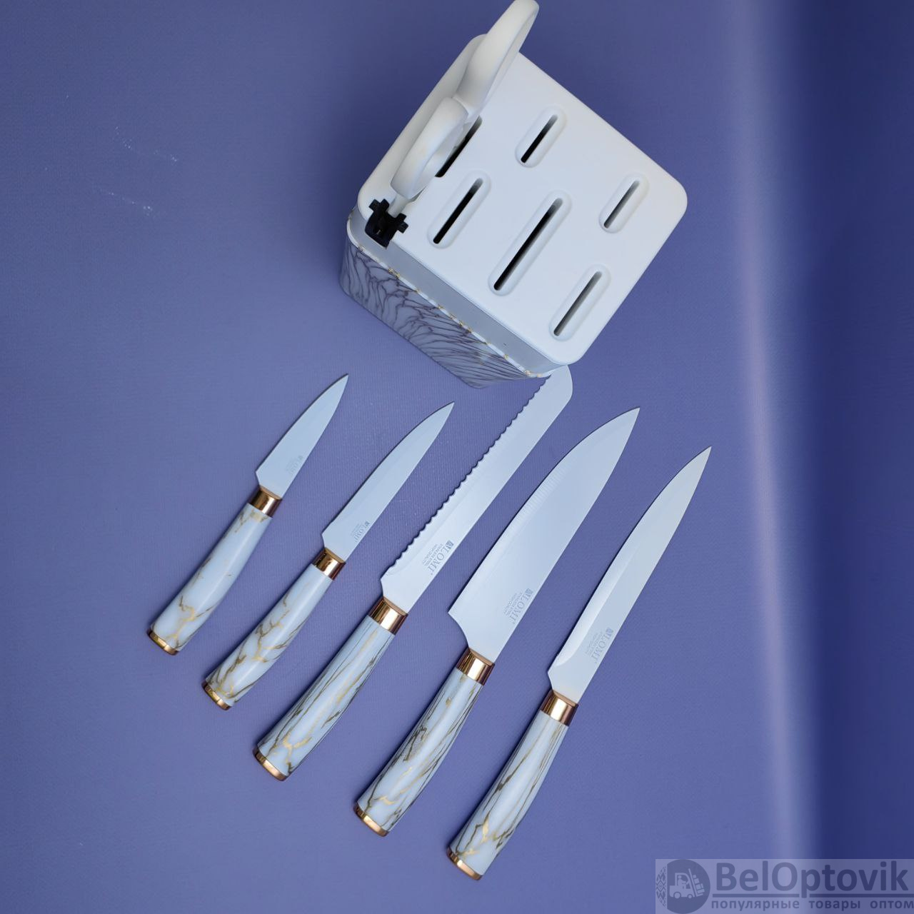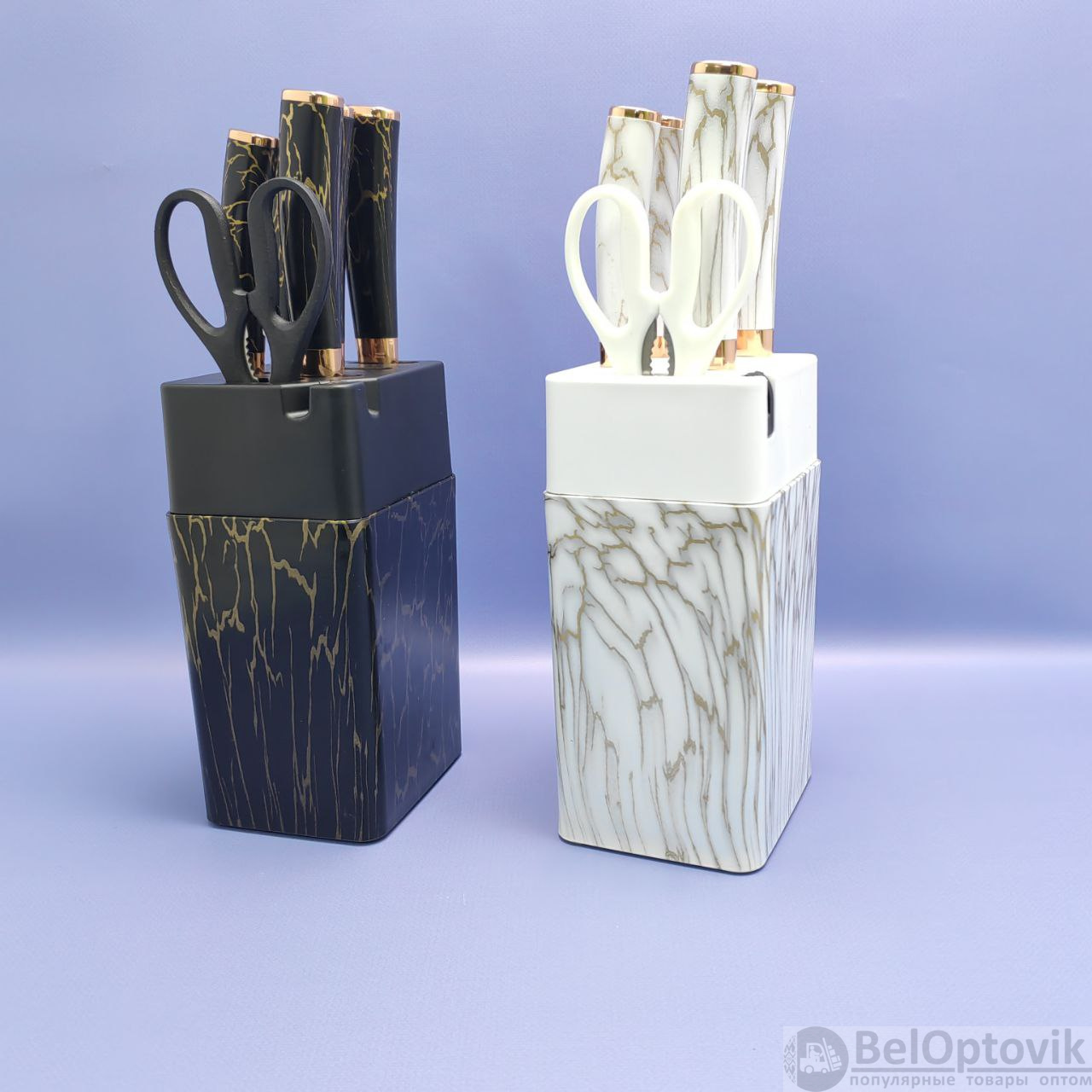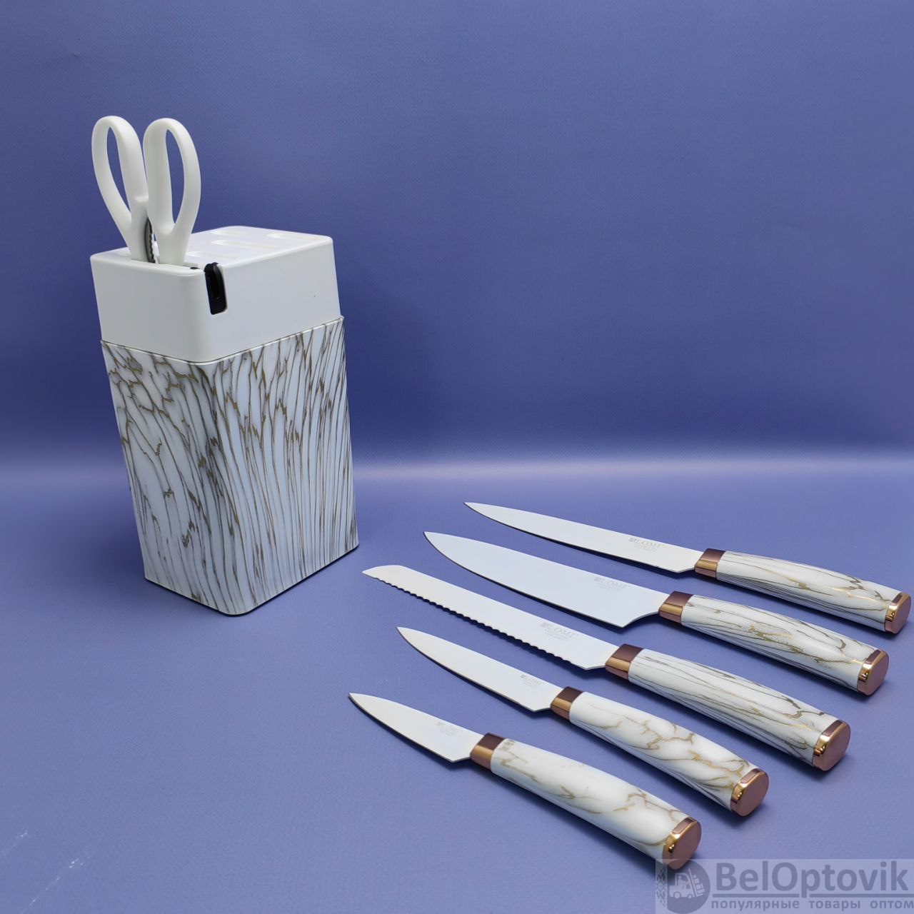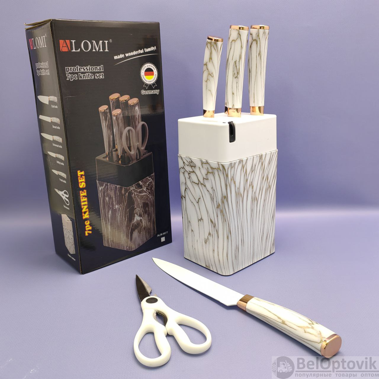 Набор кухонных ножей из нержавеющей стали 7 предметов Alomi на подставке / Подарочная упаковка, Белый мрамор