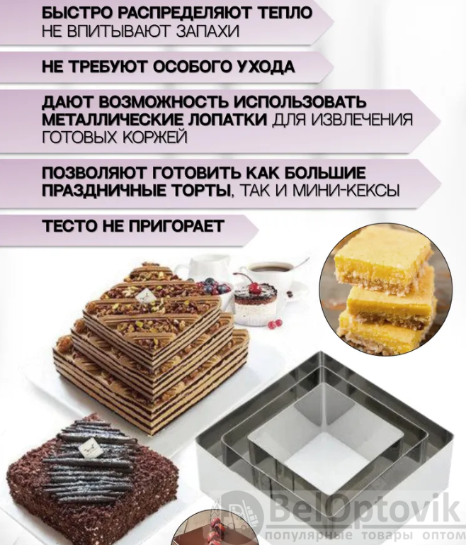 Трудно найти человека, который бы совсем равнодушно относился к сладостям. Изысканный тортик способен не только порадовать приятным вкусом и аппетитным запахом, но и украсить любой праздничный стол. Торт в форме цветка, сердца или классического квадрата подойдёт не только для маленьких именинников, но и сможет стать идеальным дополнением стола для взрослого праздника. Для этого нужны специальные формочки из нержавеющей стали. Кольцо для торта из нержавеющей стали Cake Baking Tool пользуются популярностью у ценителей вкусной выпечки. В этой долговечной посуде выпечка готовится очень быстро и радуют характерной хрустящей корочкой. Отличные надежные формы. Не ржавеют, не мнутся, не бьются, быстро прогреваются.
