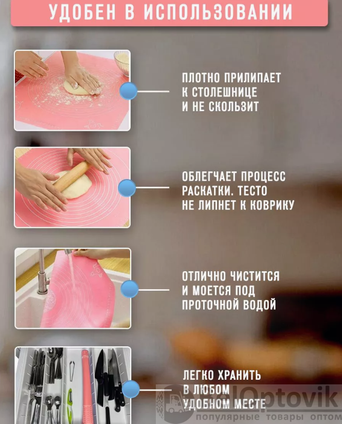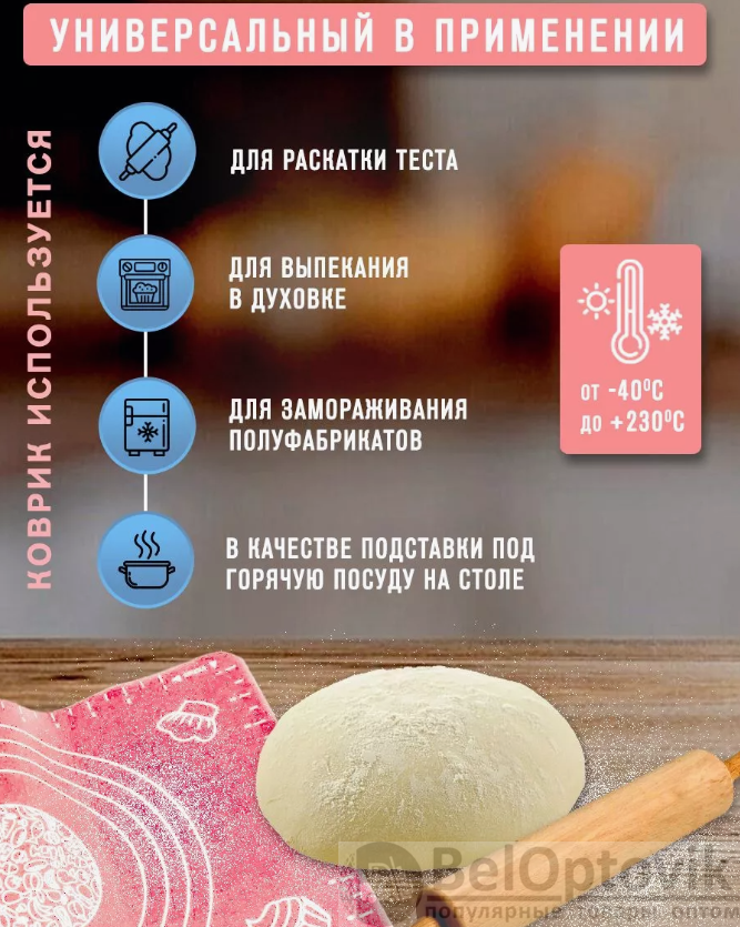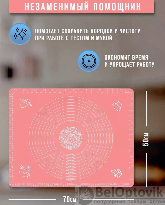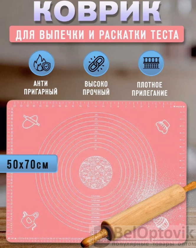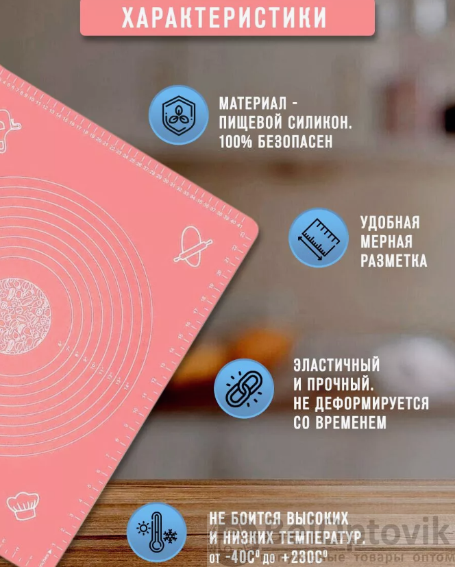 Почему купить Коврик силиконовый для раскатки теста 70х50 см. / Коврик антипригарный с разметкой оптом выгодно у нас: