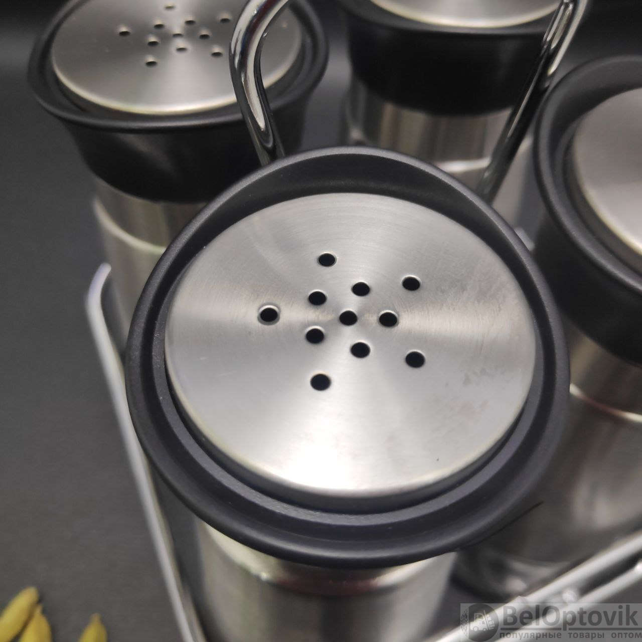 С помощью набора на подставке Вы сможете компактно разместить специи, сэкономить место и обеспечить порядок, а за счет того, что баночки имеют металлический корпус- держать и крутить в руке баночки хочется постоянно. Благодаря компактности Ваше "рабоче-кухонное" место всегда будет чистым!