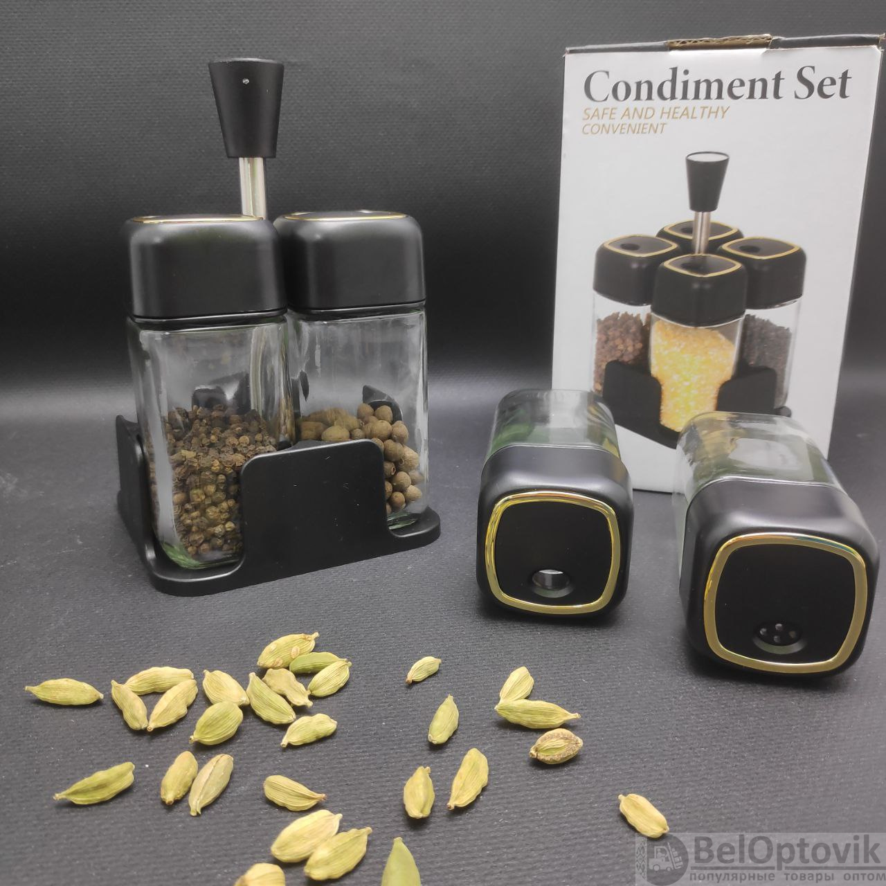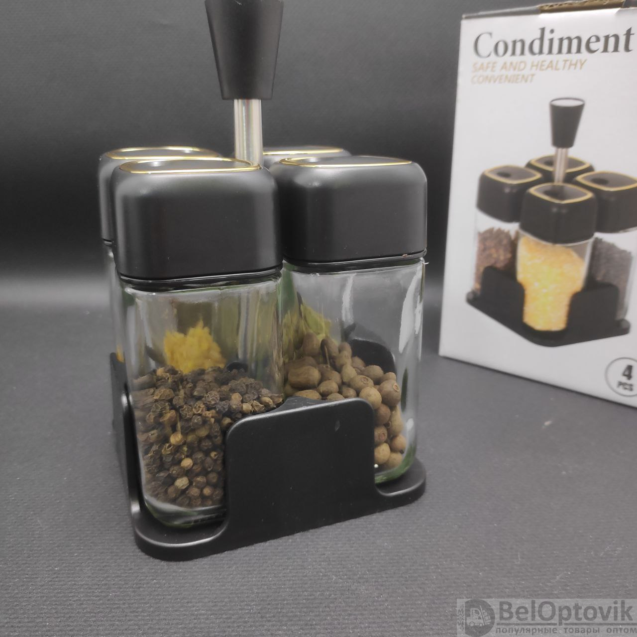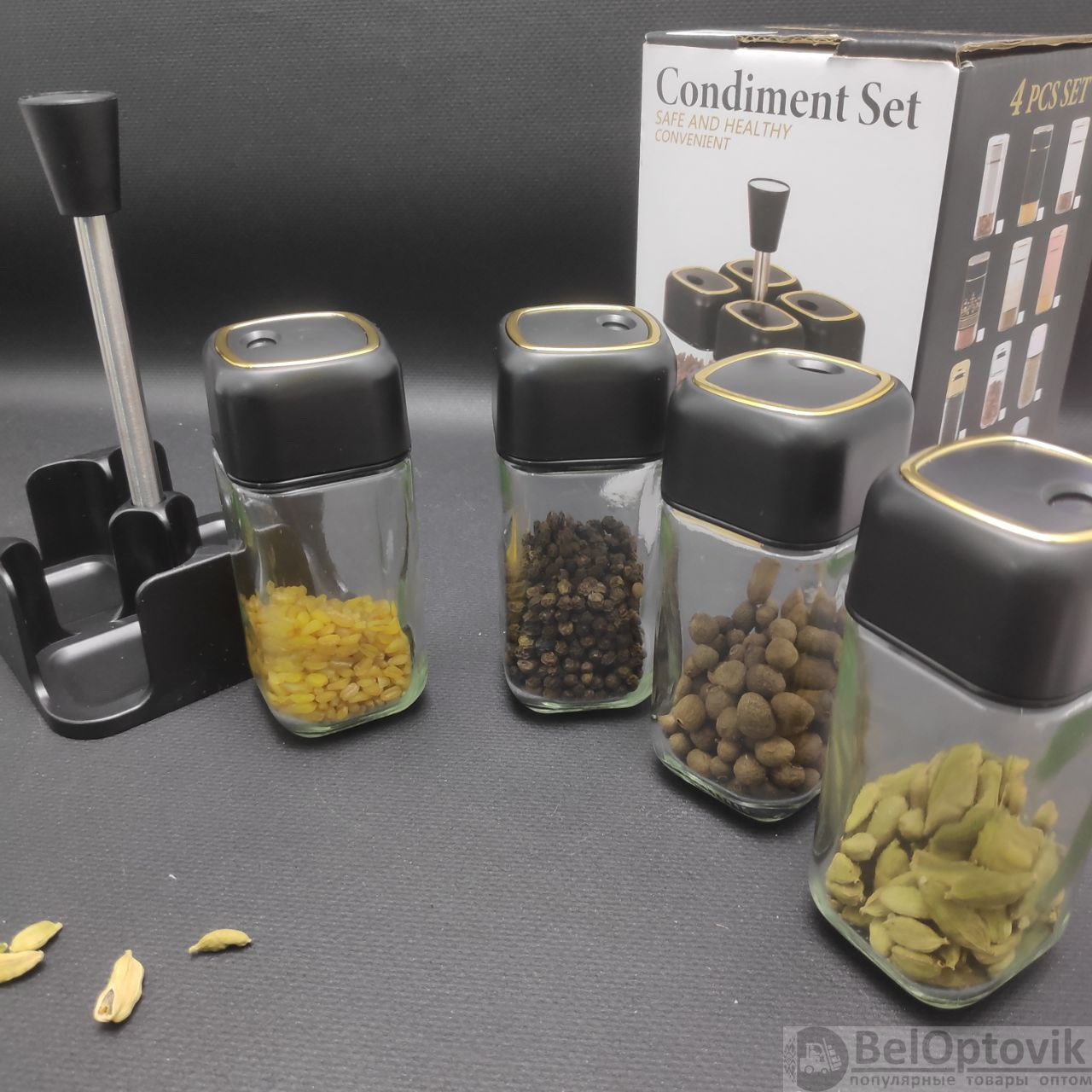 Набор для специй на подставке Condiment Set / Набор из 4 баночек / Стекло и нержавеющая сталь