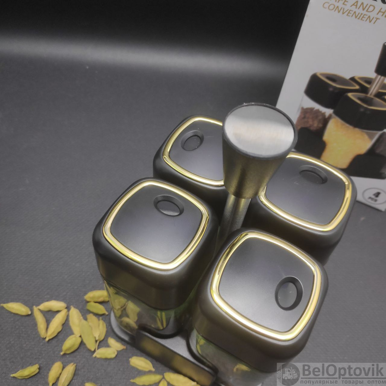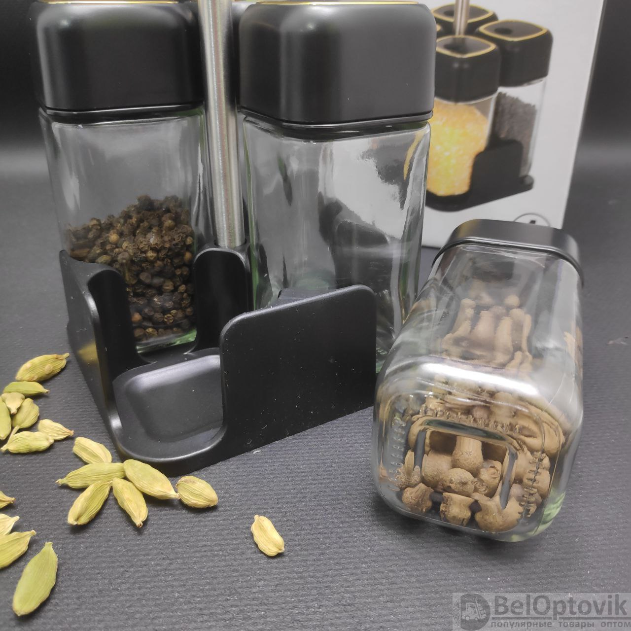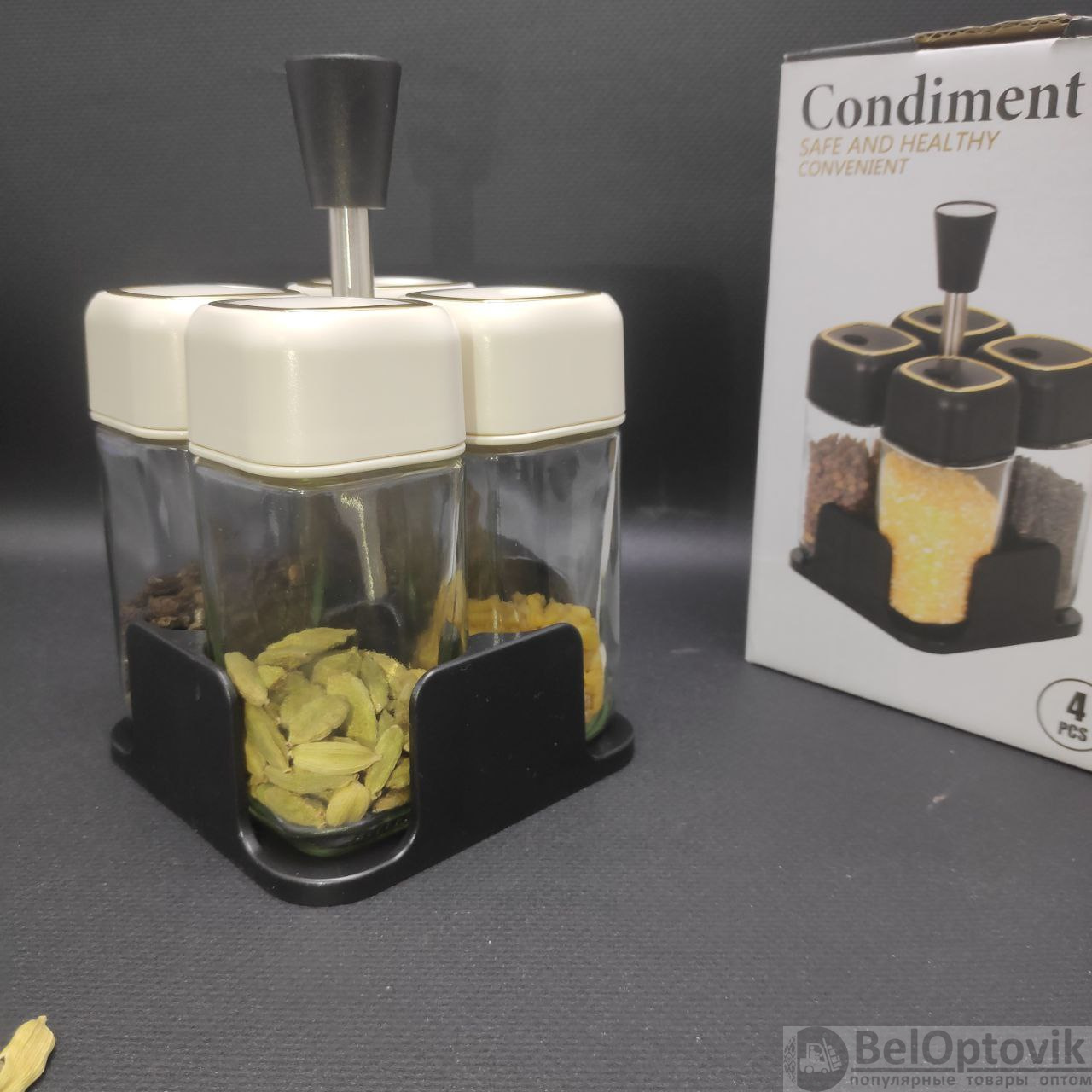Набор для специй на подставке Condiment Set / Набор из 4 баночек / Стекло и нержавеющая сталь