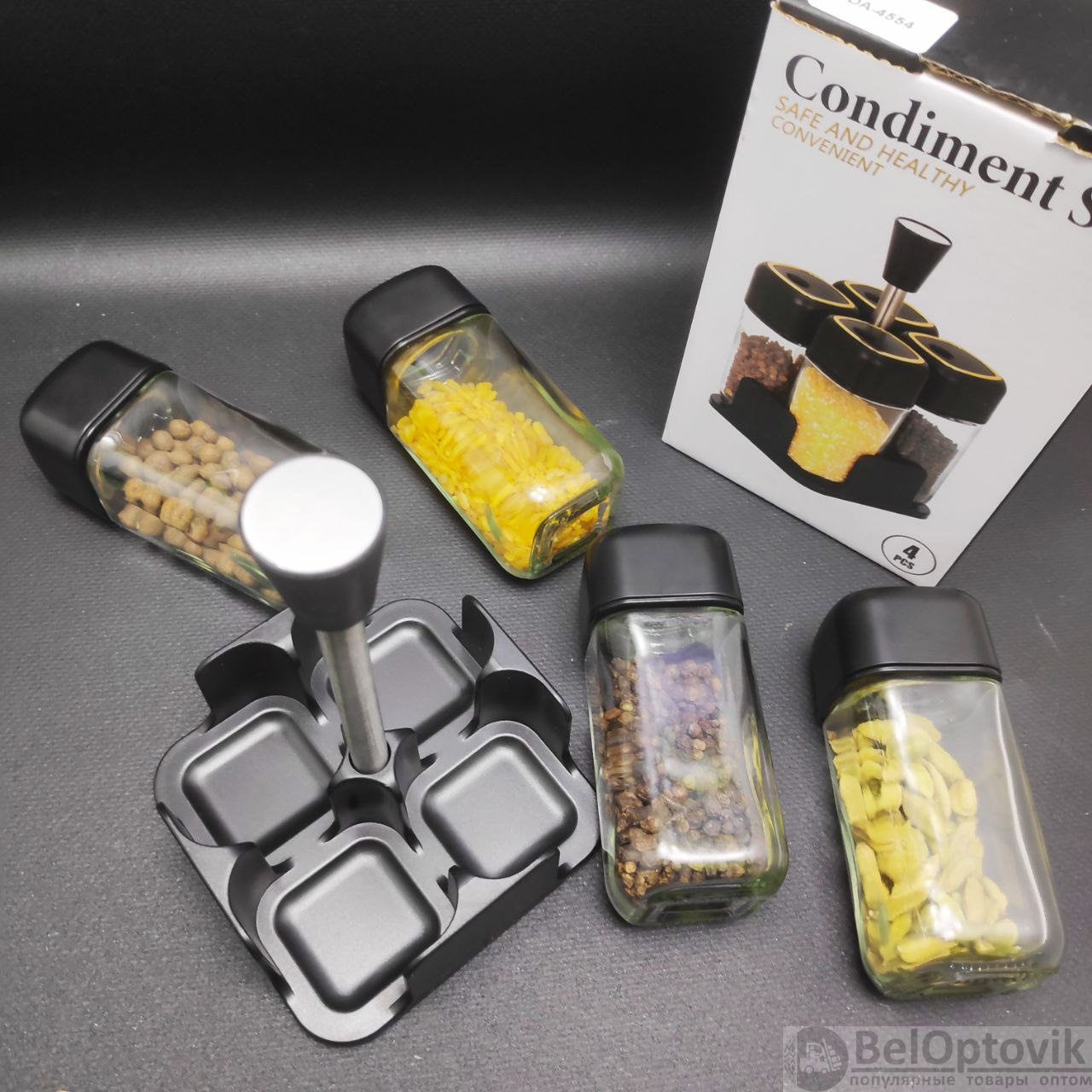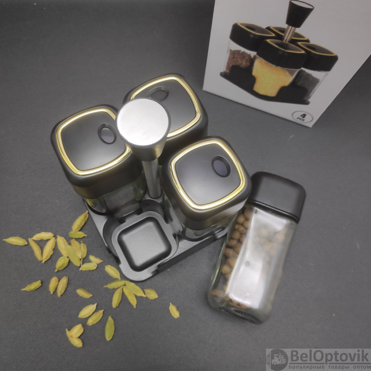 Купить Набор для специй на подставке Condiment Set / Набор из 4 баночек / Стекло и нержавеющая сталь на нашем сайте можно ОПТОМ от 20 шт. или не менее 5, если Вы покупаете у нас и другие товары (сборный заказ).
