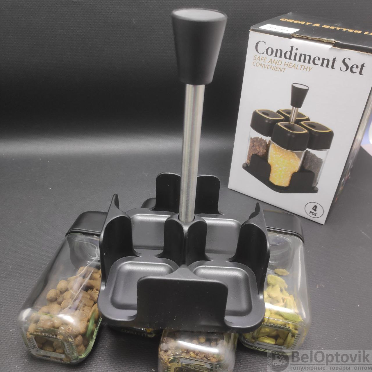 Что такое Набор для специй на подставке Condiment Set / Набор из 4 баночек / Стекло и нержавеющая сталь