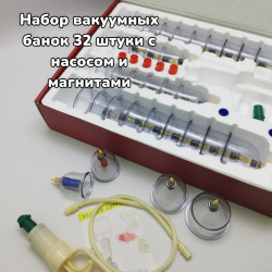 Комплектность: 32 вакуумные банки (3.50 см. (5 шт.), 4.00 см. (7 шт.), 5.00 см. (10 шт.), 6.00 см. (10 шт.));