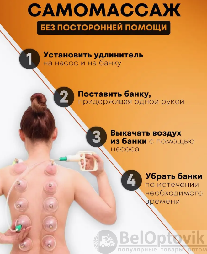 - Горловину банки необходимо плотно установить на кожу и присоединенным насосом откачать воздух из банки, простым движением руки.