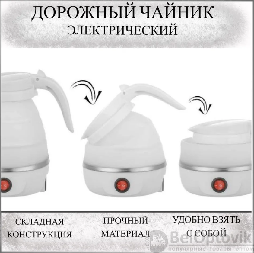Электрочайник дорожный YS-2008, 600W (складной, силиконовый, 0.6l, 220V) – 1 шт.;