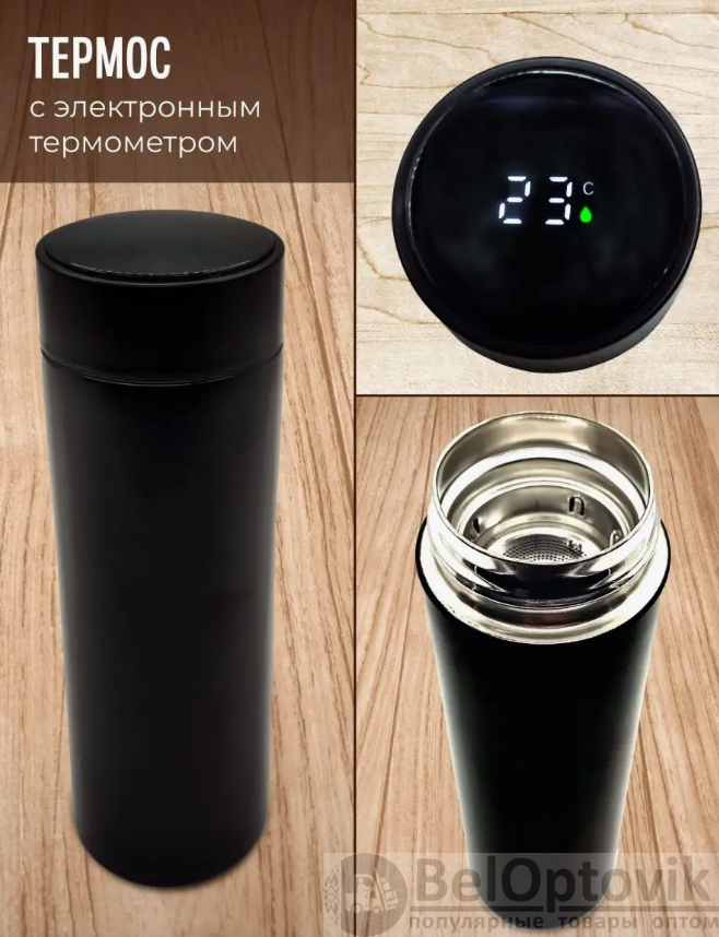 Почему купить Термос с индикатором температуры и ситечком, 500 мл. / Черный, матовый оптом выгодно у нас:· Гарантия низких цен, напрямую от производителя