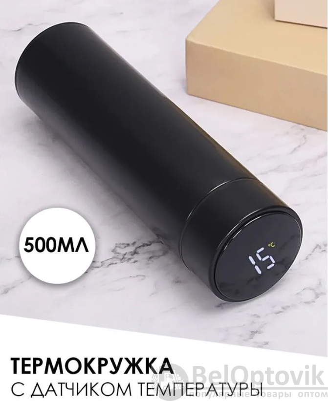Термос с индикатором температуры и ситечком, 500 мл. / Черный, матовый – 1 шт.;
