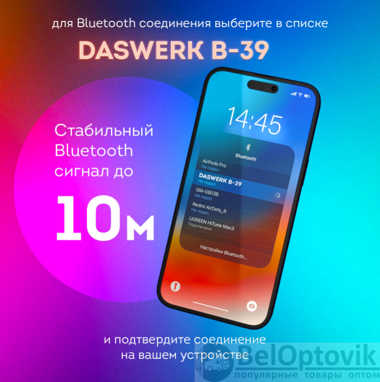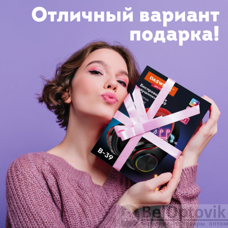 Купить Наушники беспроводные светящиеся накладные DASWERK B-39 на нашем сайте можно ОПТОМ от 20 шт. или меньше, если Вы покупаете у нас и другие товары (сборный заказ).