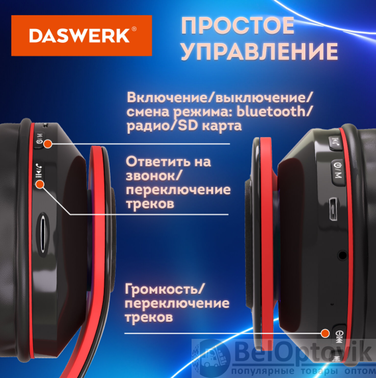 Наушники беспроводные светящиеся накладные DASWERK B-39 – 1 шт.;