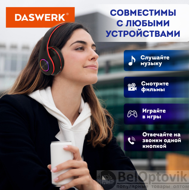 Почему купить Наушники беспроводные светящиеся накладные DASWERK B-39 выгодно у нас: