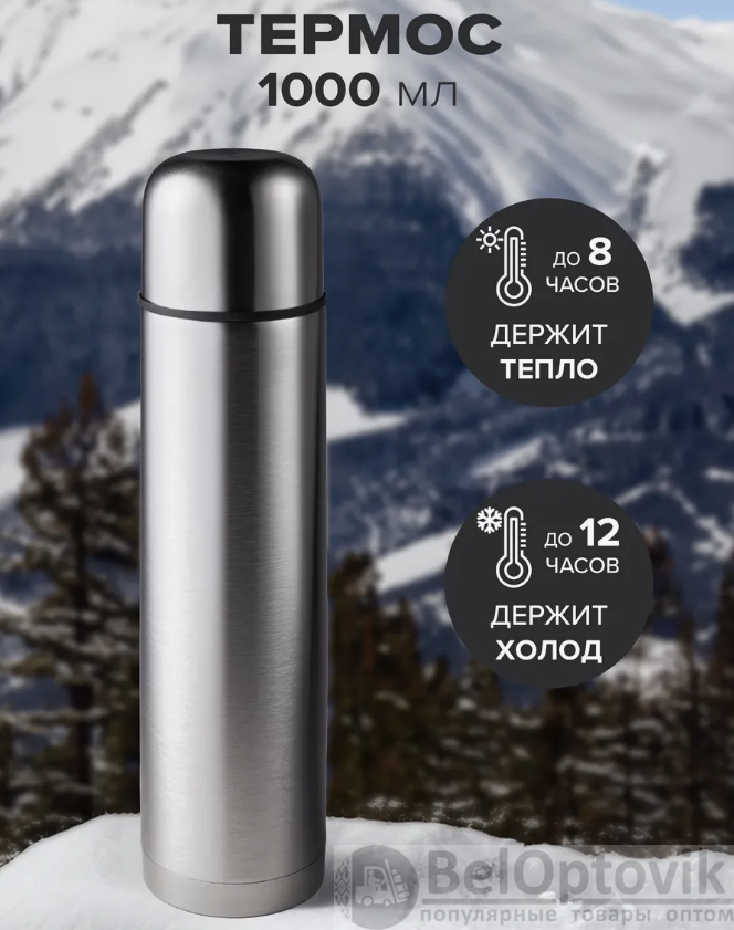 Термос 1.0 литр - это компактный удобный термос, предназначенный для хранения жидкостей, поддерживая их температуру, который можно взять с собой в дорогу. Колба изделия выполнена из высококачественной нержавеющей стали, которая обладает высокими антикоррозийными свойствами, долговечна и абсолютно безопасна для здоровья. Благодаря двойным стенкам температура жидкости внутри сохранится на длительный срок. Термос имеет металлический корпус, обладает повышенной прочностью и долговечностью, он легко моется и станет полезным аксессуаром для каждого.