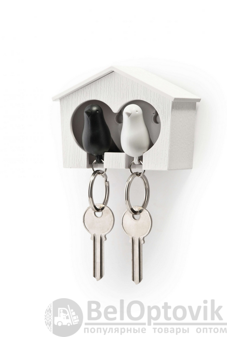 Замечательная идея от дизайнеров тайского бренда Qualy ― специальный домик для персональных хранителей ключей в виде птичек! Теперь Вы всегда будете знать, где ключи, а не искать их на полках перед выходом из дома. Держатель крепится к стене на специальный надежный скотч , либо вешается на два шурупа. Удобный брелок легко помещается внутрь домика, быстро находится в сумке или в кармане, а главное – он является еще и свистком! Так что можно оповестить домашних о своем приходе с работы:) В данном случае мы предлагаем Вам семейный вариант ― птичка для нее и для него. Сладкая парочка в домике будет обозначать, что семья в сборе! Основные характеристики: Оригинальные держатели для ключей ― отличное украшение любой прихожей.Фирменная подарочная упаковка от Qualy. Отличный подарок на новоселье. Размеры в упаковке, см 9,8 х 8 х 5,5 Страна производства - Таиланд.Страна бренда - Таиланд.