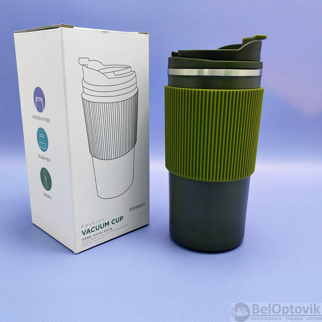 Термокружка с прорезиненным покрытием 450 мл. / Термостакан из нержавеющей стали, Зеленый цвет