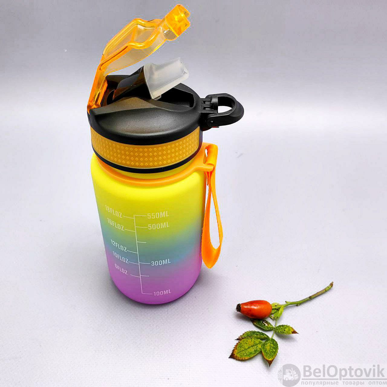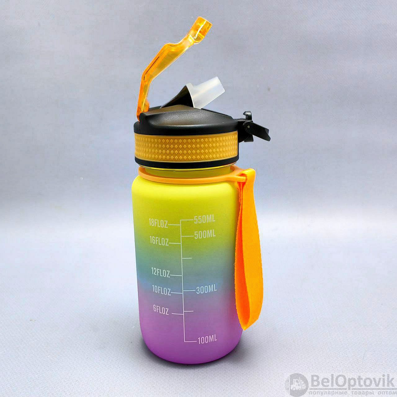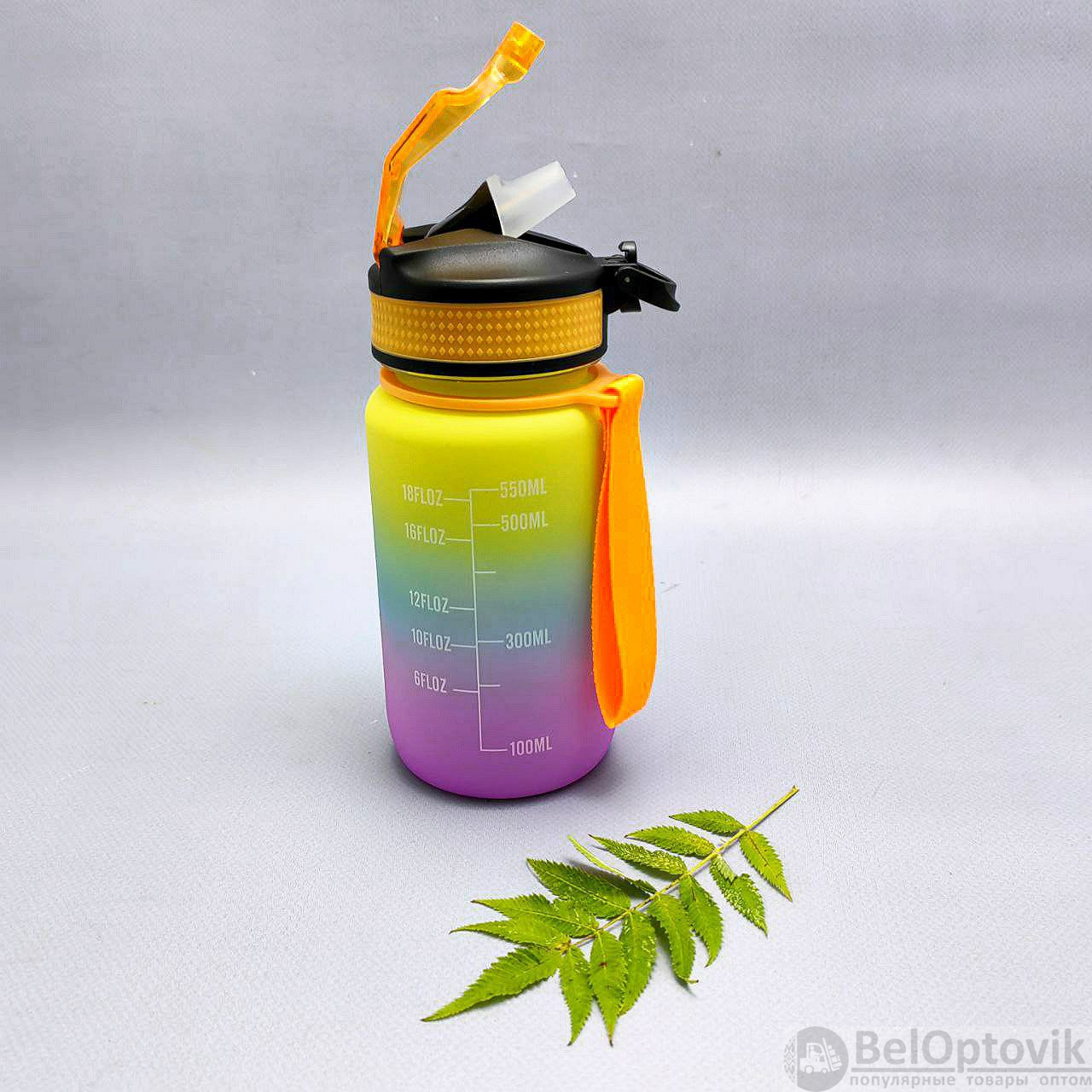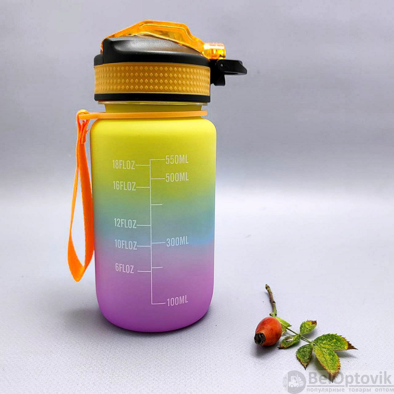 Бутылка для воды 550 мл. с клапаном и разметкой / Двухцветная бутылка для воды и других напитков, цвет РАДУГА