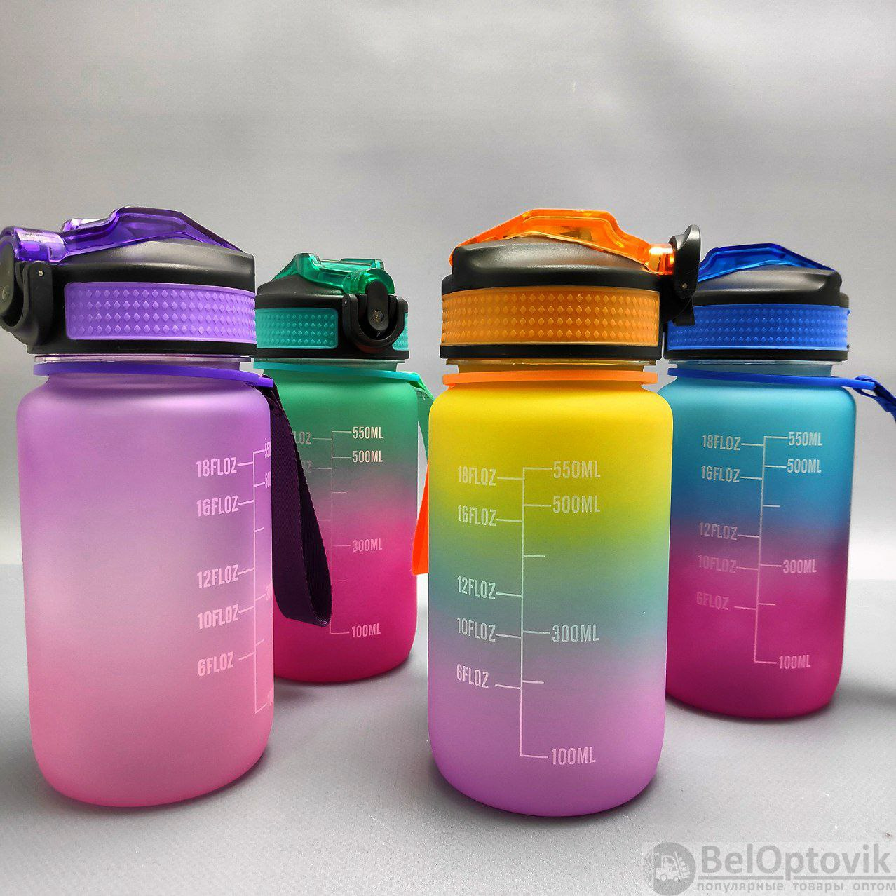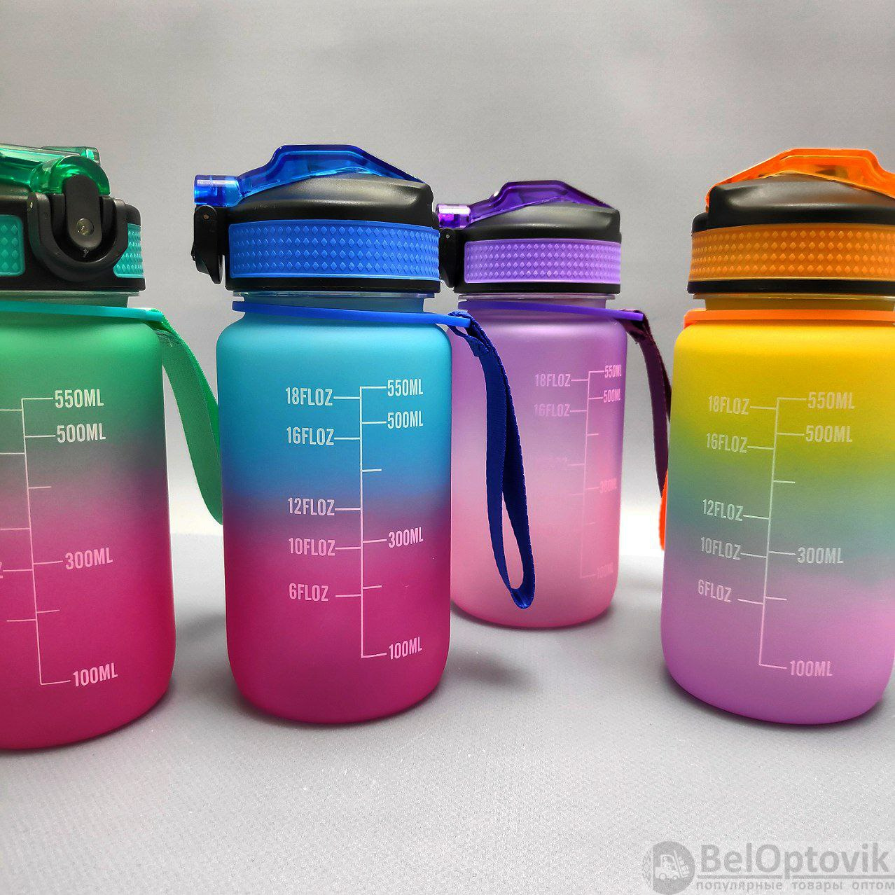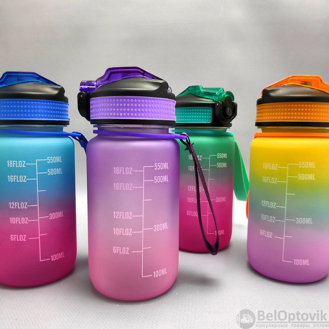 Двухцветные бутылки для воды 550 мл. с клапаном и разметкой - это особенные бутылки с красивой разметкой и временем потребления жидкости! На бутылках есть шкала-маркеры, которая показывают, сколько воды нужно выпить и к какому времени. Такие бутылки настоящие помощники для всех, кто хочет поддерживать правильный баланс воды в организме! Красивые двухцветные бутылки подходят как для мужчин и женщин, так и для детей и подростков. Бутылки 550 мл.- идеальный объем для активного дня!