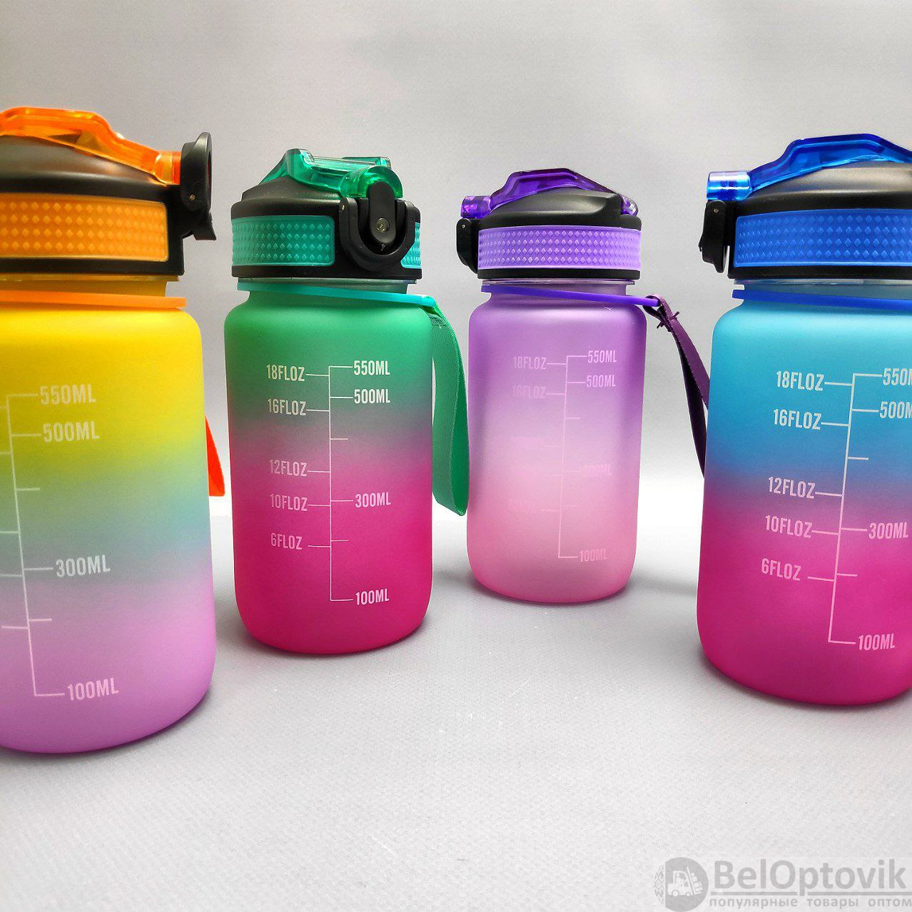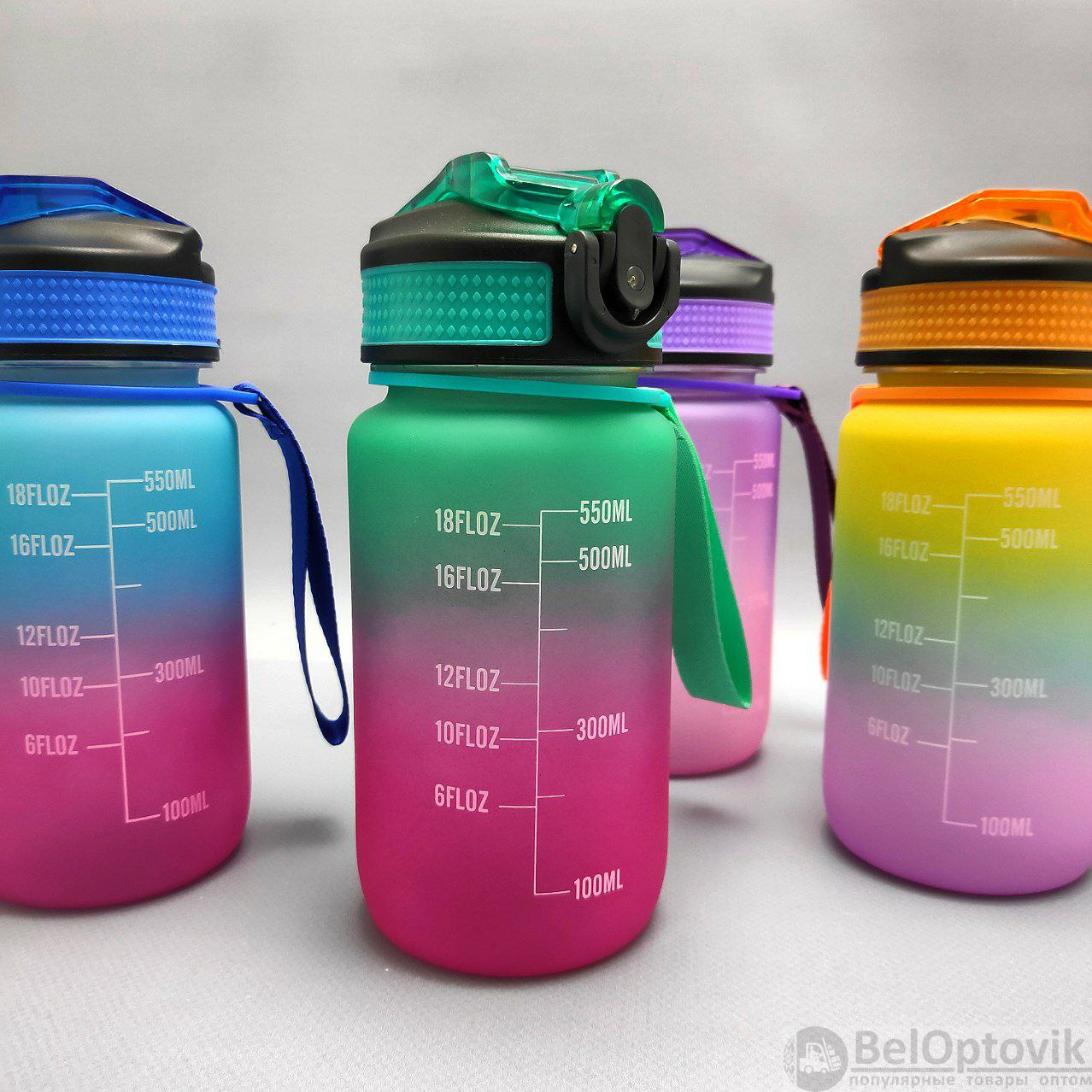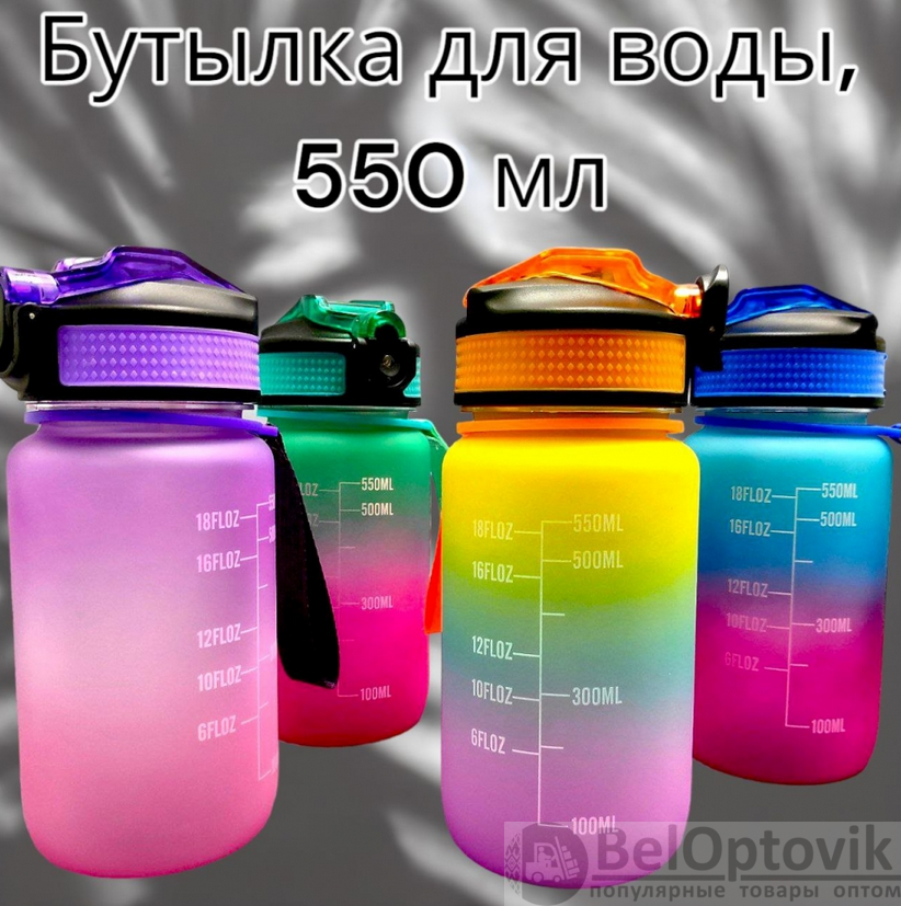 Двухцветные бутылки для воды 550 мл. с клапаном и разметкой - это особенные бутылки с красивой разметкой и временем потребления жидкости! На бутылках есть шкала-маркеры, которая показывают, сколько воды нужно выпить и к какому времени. Такие бутылки настоящие помощники для всех, кто хочет поддерживать правильный баланс воды в организме! Красивые двухцветные бутылки подходят как для мужчин и женщин, так и для детей и подростков. Бутылки 550 мл.- идеальный объем для активного дня!