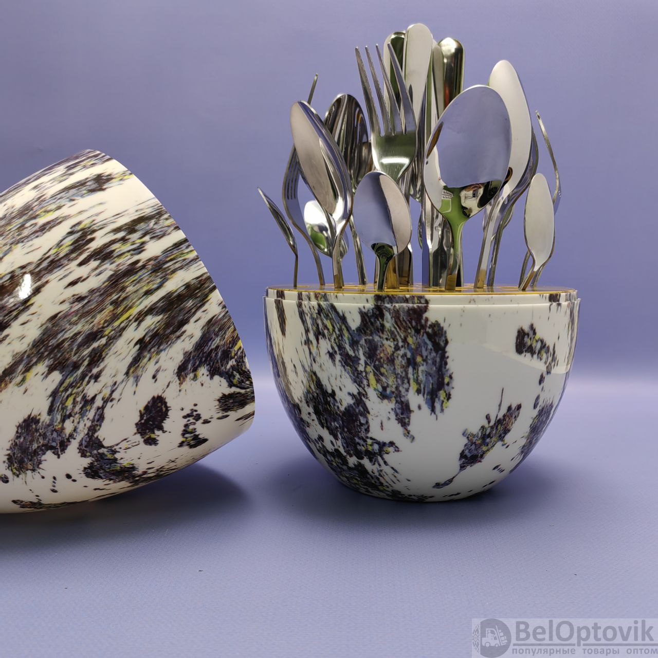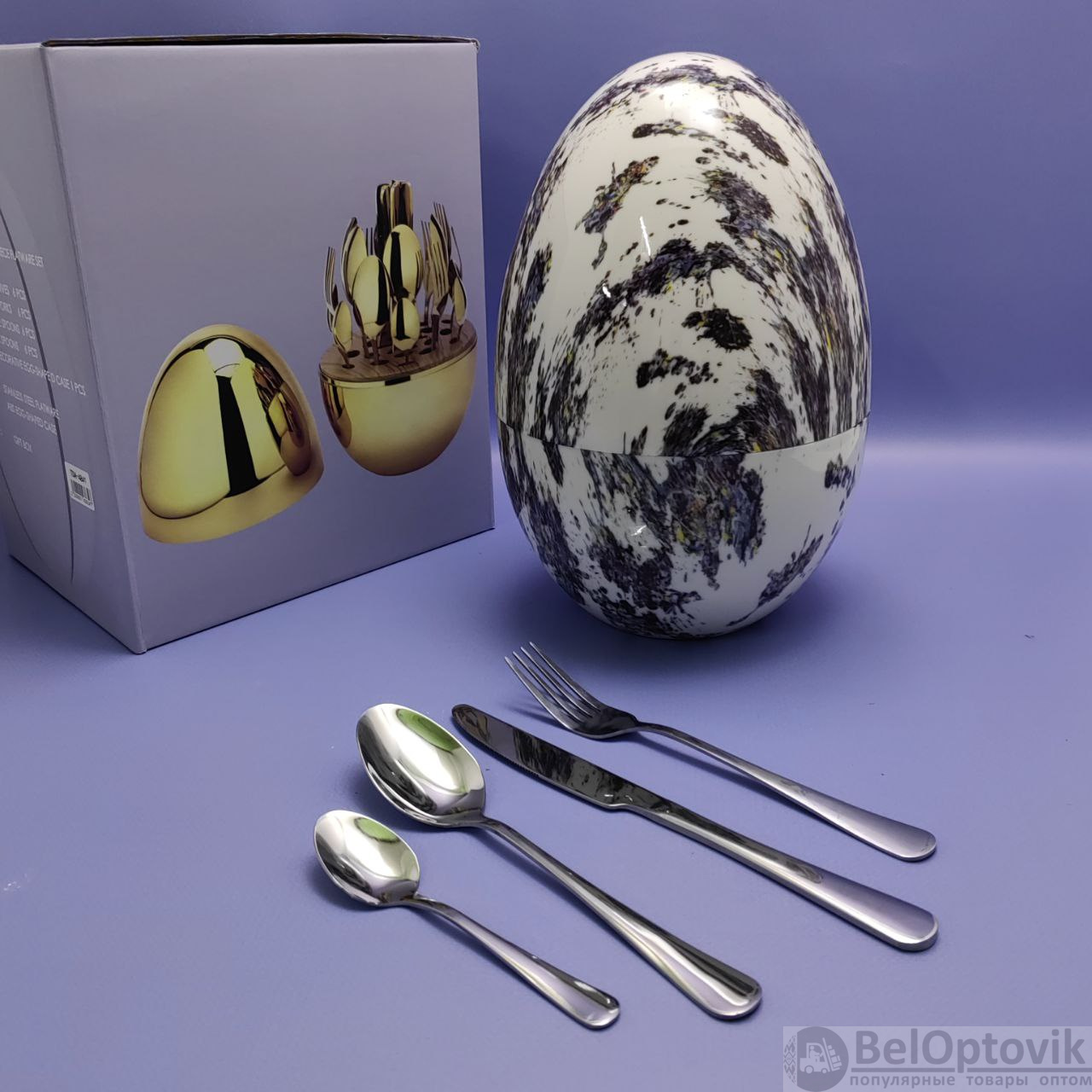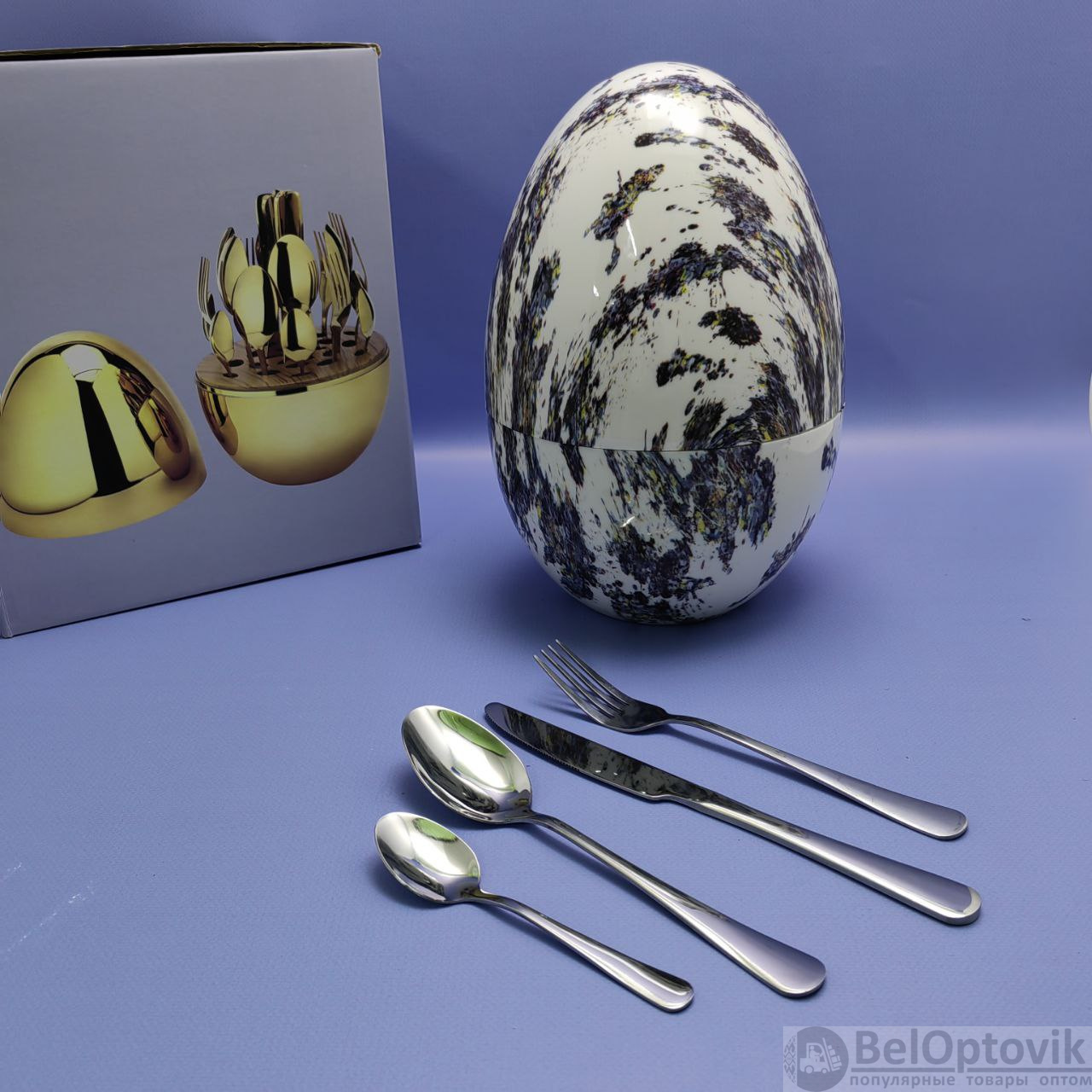 Набор столовых приборов в Футляре - Яйце Maxiegg 24 предмета / Премиум класс, цвет БЕЛЫЙ МРАМОР