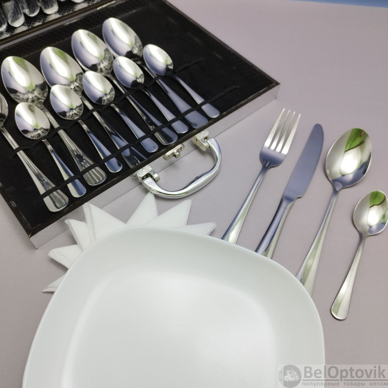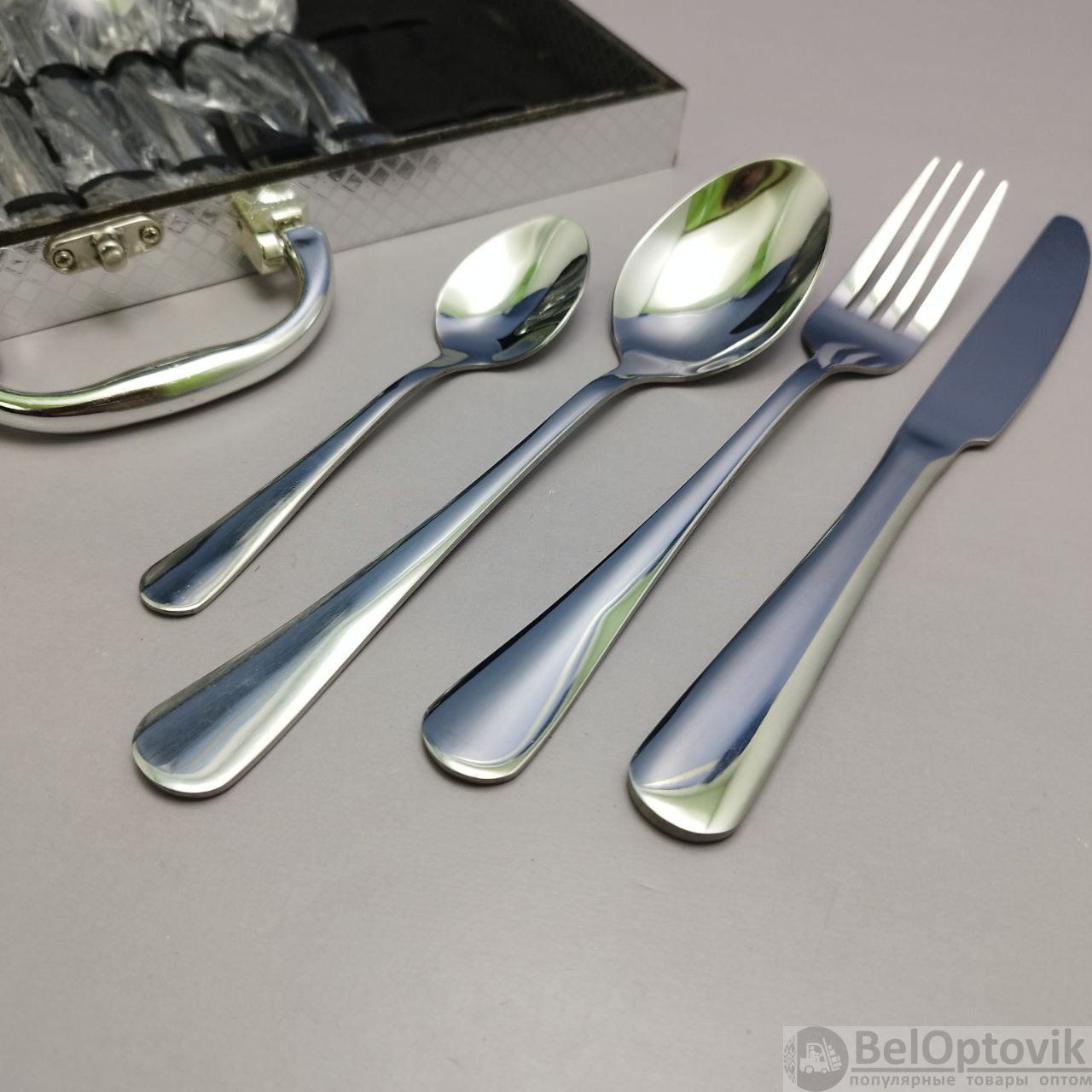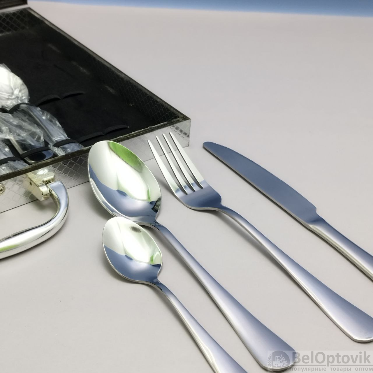 Купить Набор столовых предметов «Изысканный вкус» из нержавеющей стали на 6 персон в подарочном кейсе (24 предмета) / Серебро на нашем сайте можно ОПТОМ от 20 шт. или меньше, если Вы покупаете у нас и другие товары(сборный заказ).