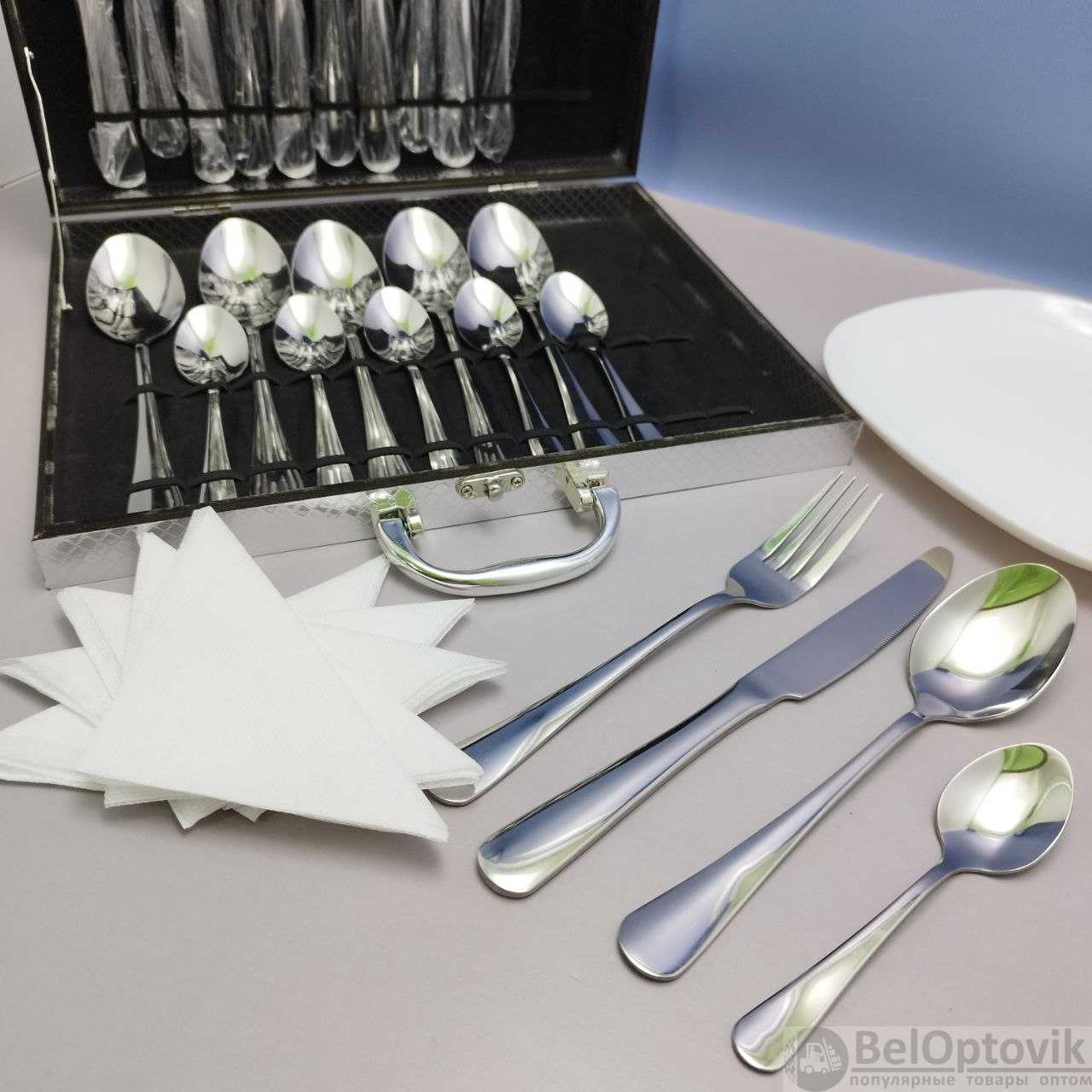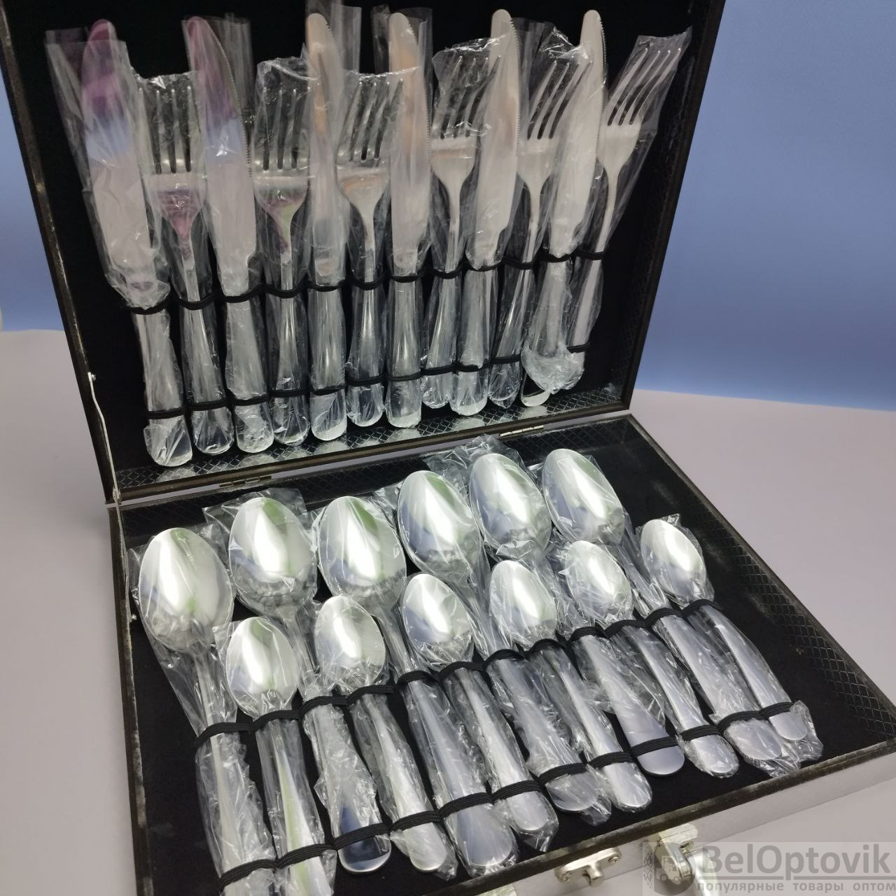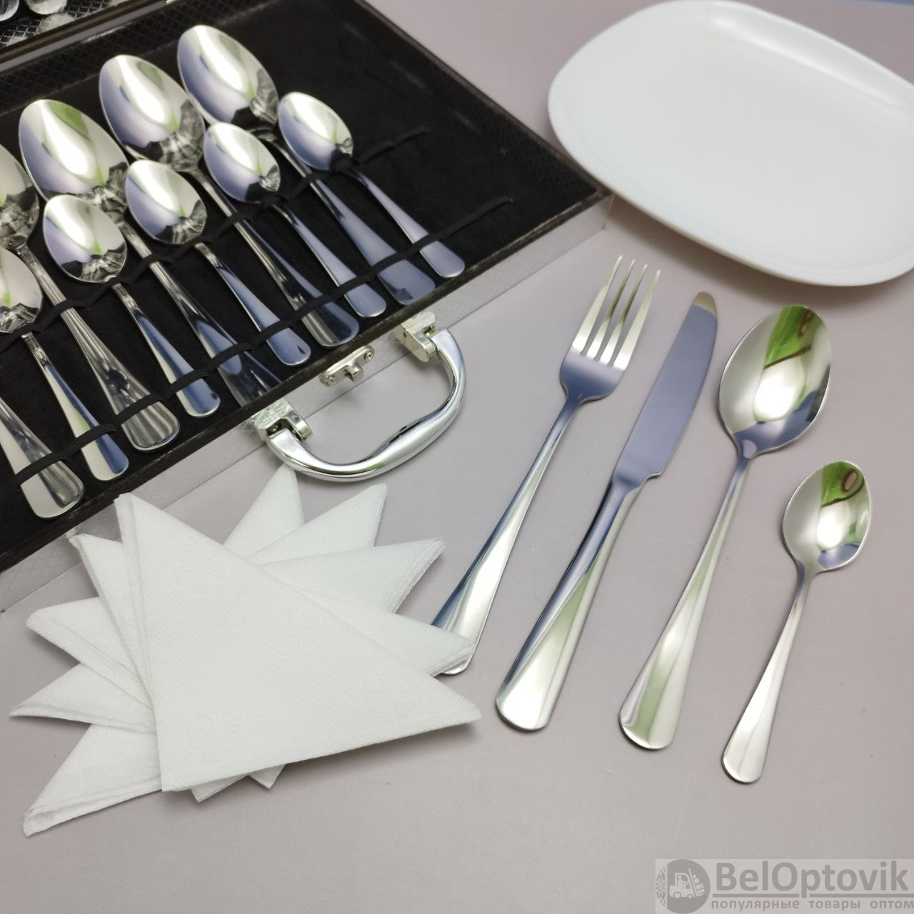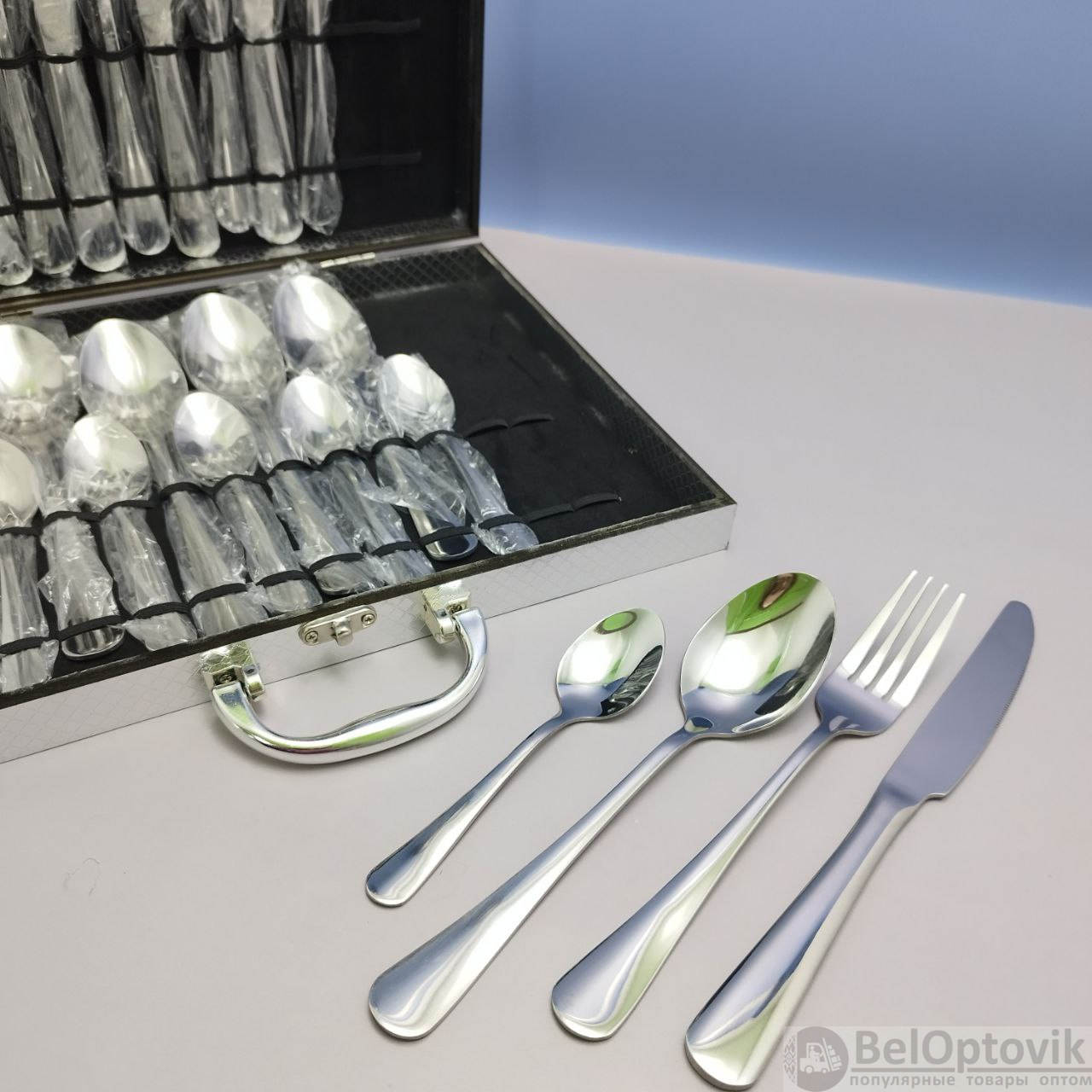 Купить Набор столовых предметов «Изысканный вкус» из нержавеющей стали на 6 персон в подарочном кейсе (24 предмета) / Серебро на нашем сайте можно ОПТОМ от 20 шт. или меньше, если Вы покупаете у нас и другие товары(сборный заказ).