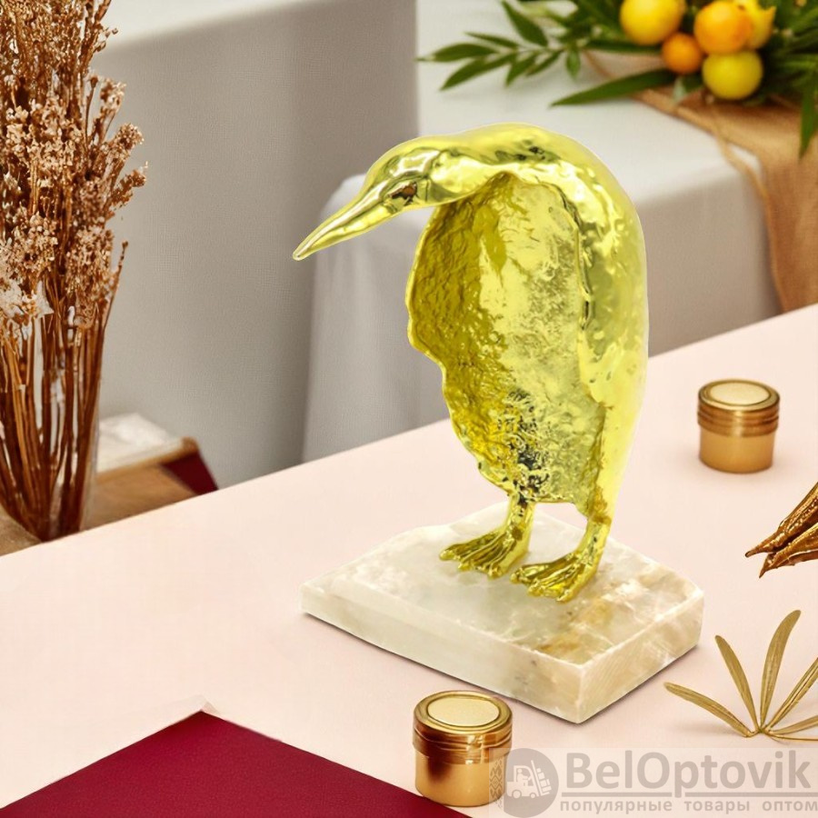 Статуэтка Статуэтка Пингвин, золотой, 110*130*180 мм., материал сплав и натуральный камень - 1 шт..