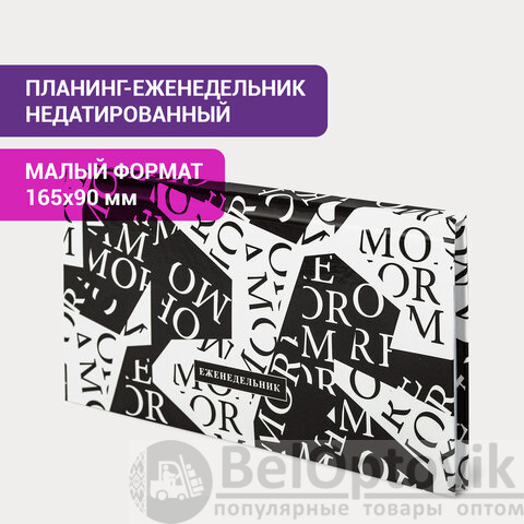 Планинг-еженедельник недатированный (165х90 мм) STAFF, твердая обложка, УФ-ЛАК, 64 л., "Black&White", 113513